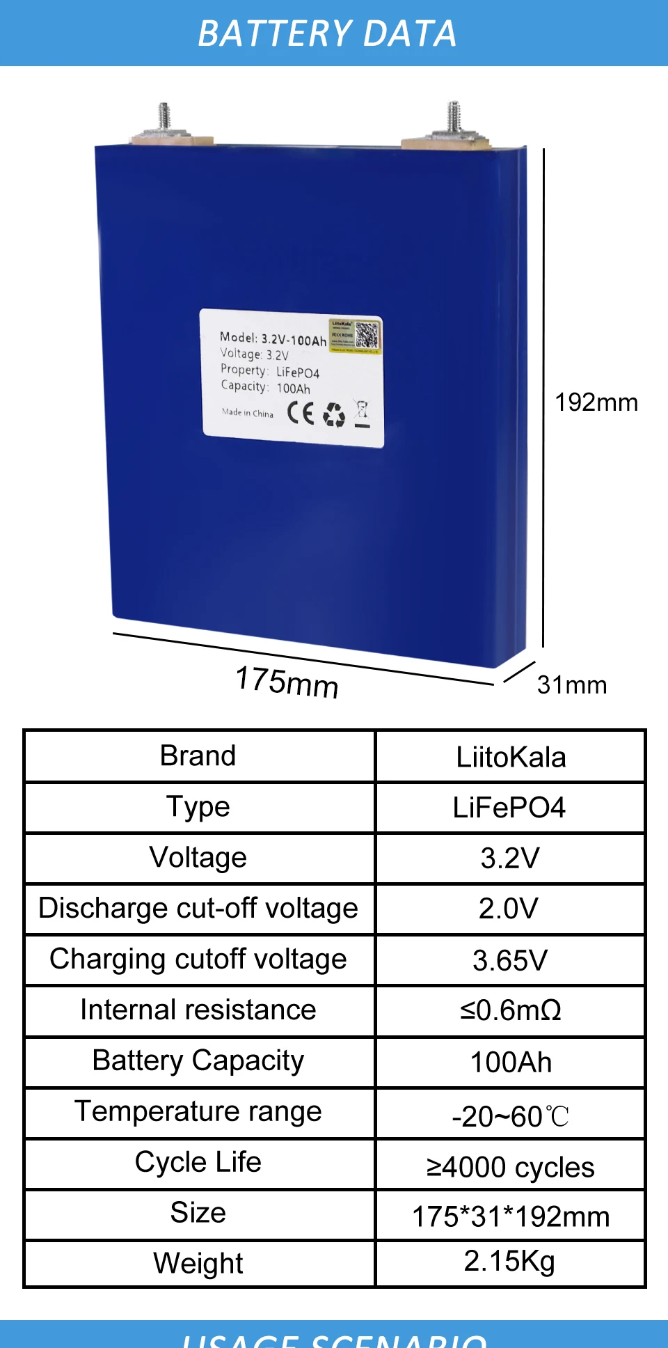 Литий-железо-фосфатная батарея LiitoKala, 3,2 в, Ач, 4 шт.