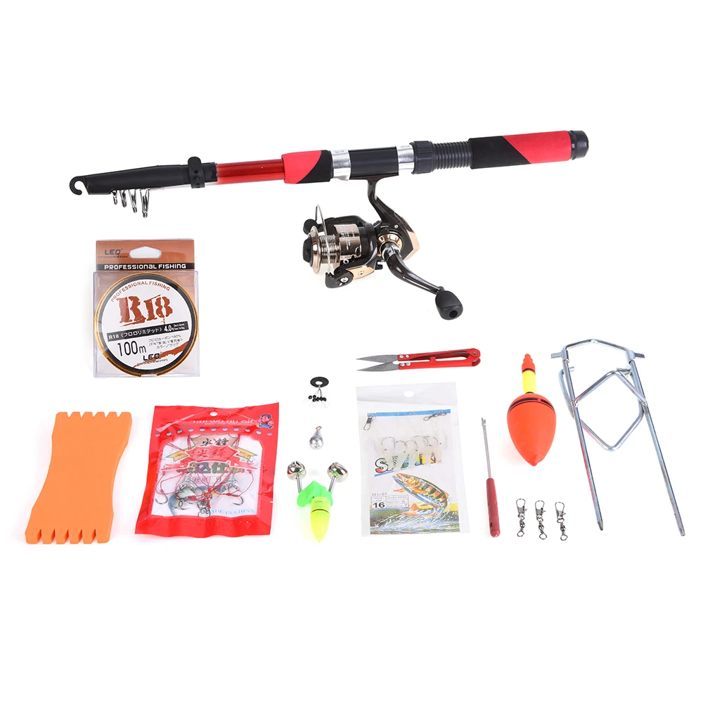 Complete Fishing Kit: Telescopic Fishing Rod + Spinning Fishing Reel + Fishing Bag Case + Various Fishing Lures + Fishing Hooks + Some Necessary Fishing Accessories.