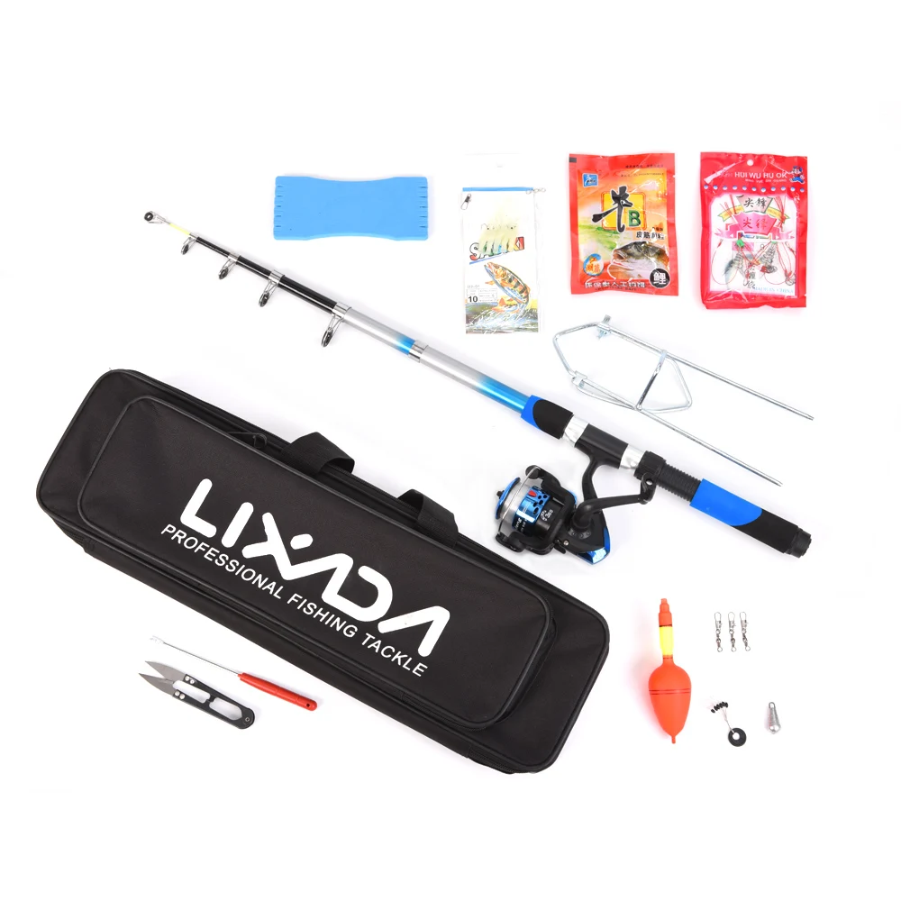 Lixada набор рыболовных снастей с 2,1 м телескопическая рыболовная удочка из стекловолокна спиннинговая Рыболовная катушка приманки Крючки удочка набор