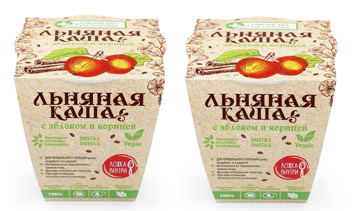 Льняная каша с яблоком и корицей "Лакомства для здоровья",с ложкой, 50г - 2 шт.