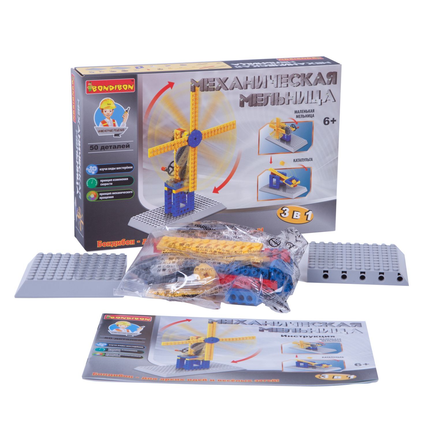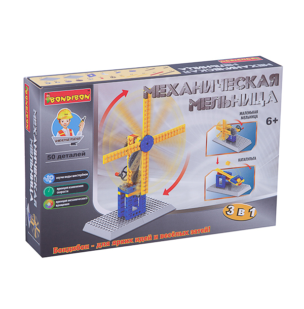 Логические, развивающие игры и игрушки Bondibon Конструктор "МЕХАНИЧЕСКАЯ МЕЛЬНИЦА" 3 в 1