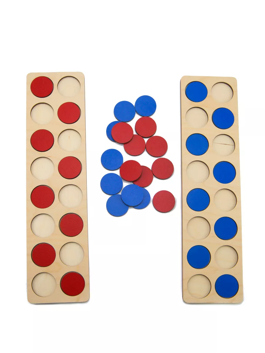 Комплектация Досочки-пальцеходы - 2 шт; Кружочки красные - 16 шт; Кружочки синие - 16 шт