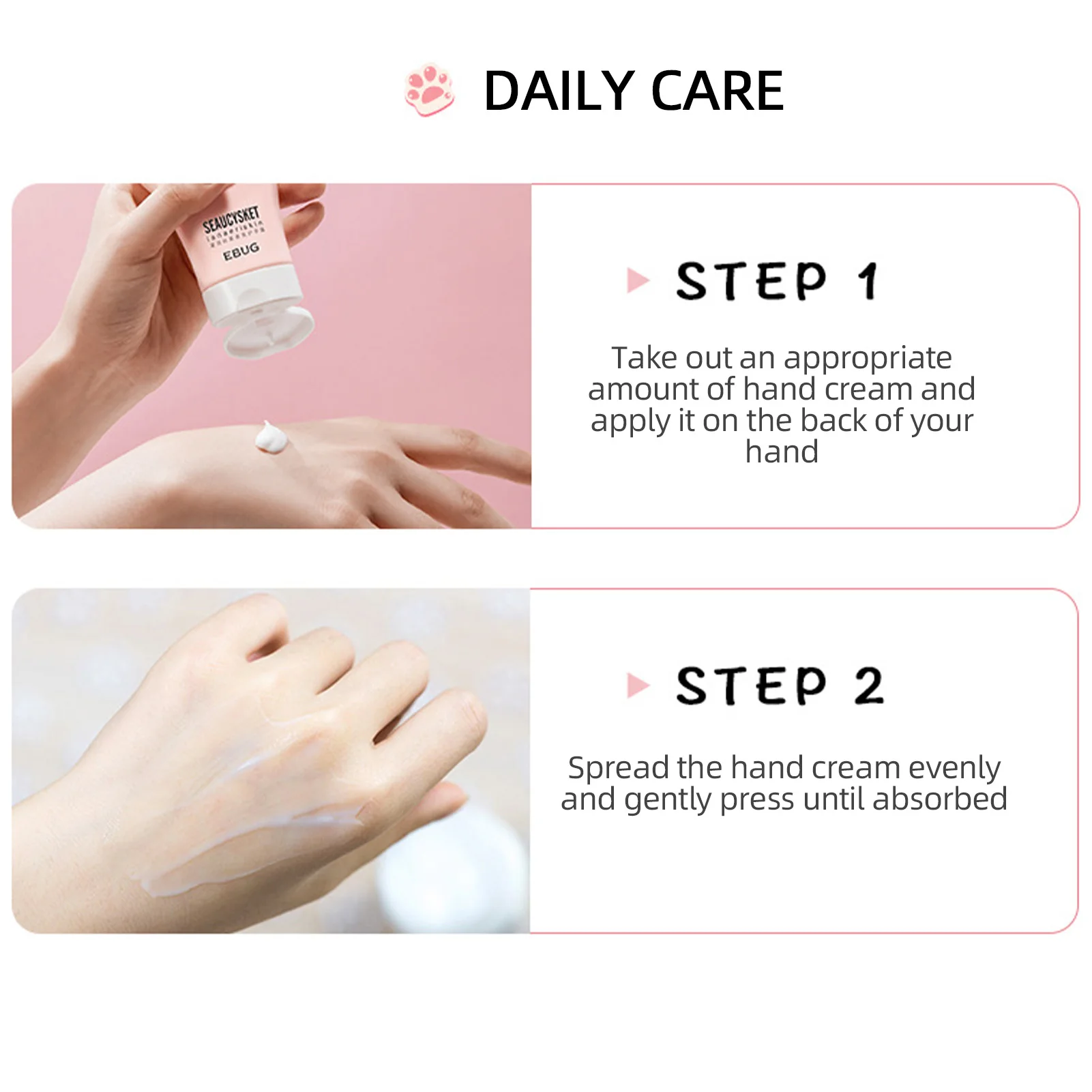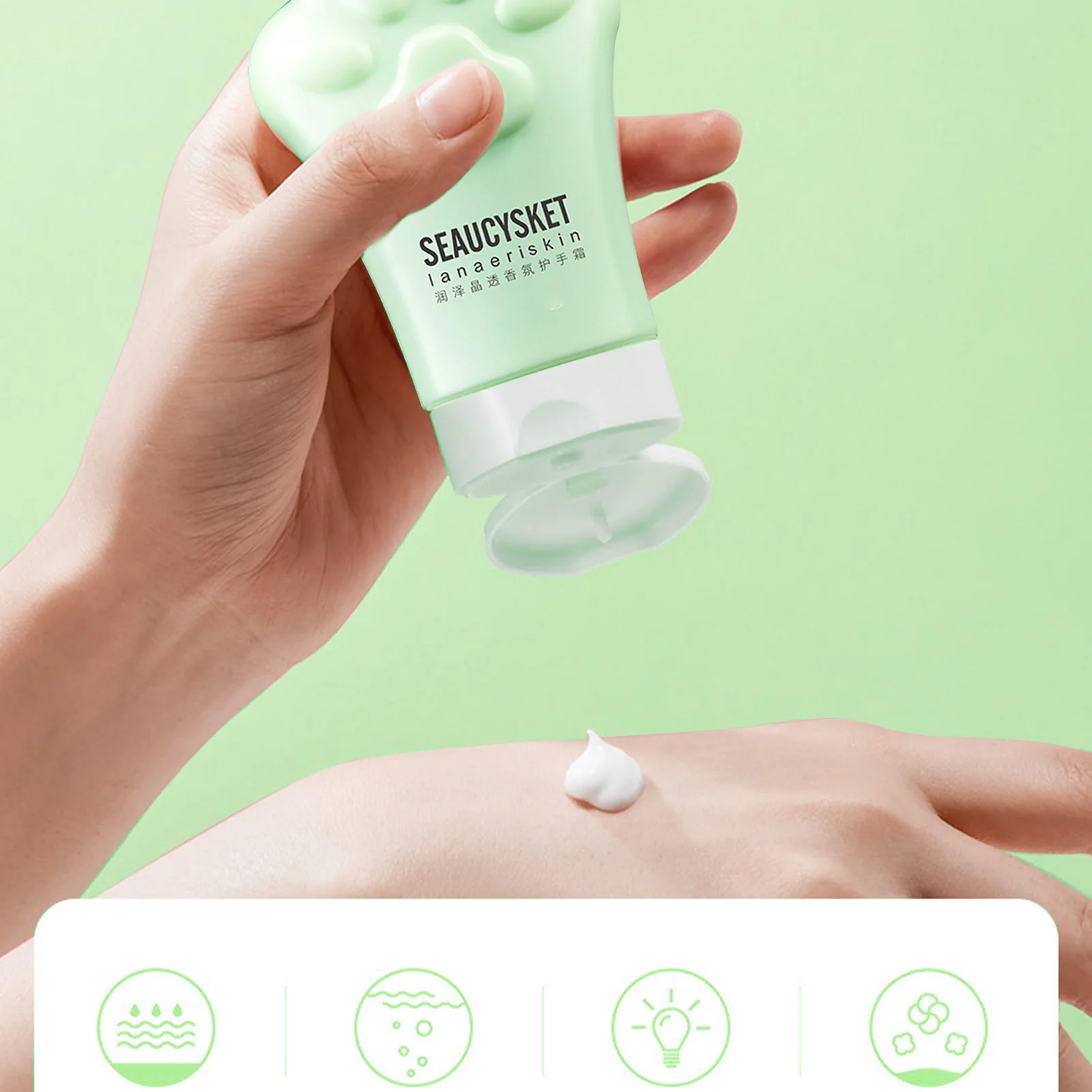 Мягкая и восковая текстура, она светильник и легко наносится. Он мгновенно тает в кожу. Мягкие и увлажняющие, удаляющие сухие и грубые руки, оставляя руки яркими и нежными и мягкими. Он имеет три вида ароматов, насыщенный персик, свежий зеленый чай и ароматный и три вида настроения.