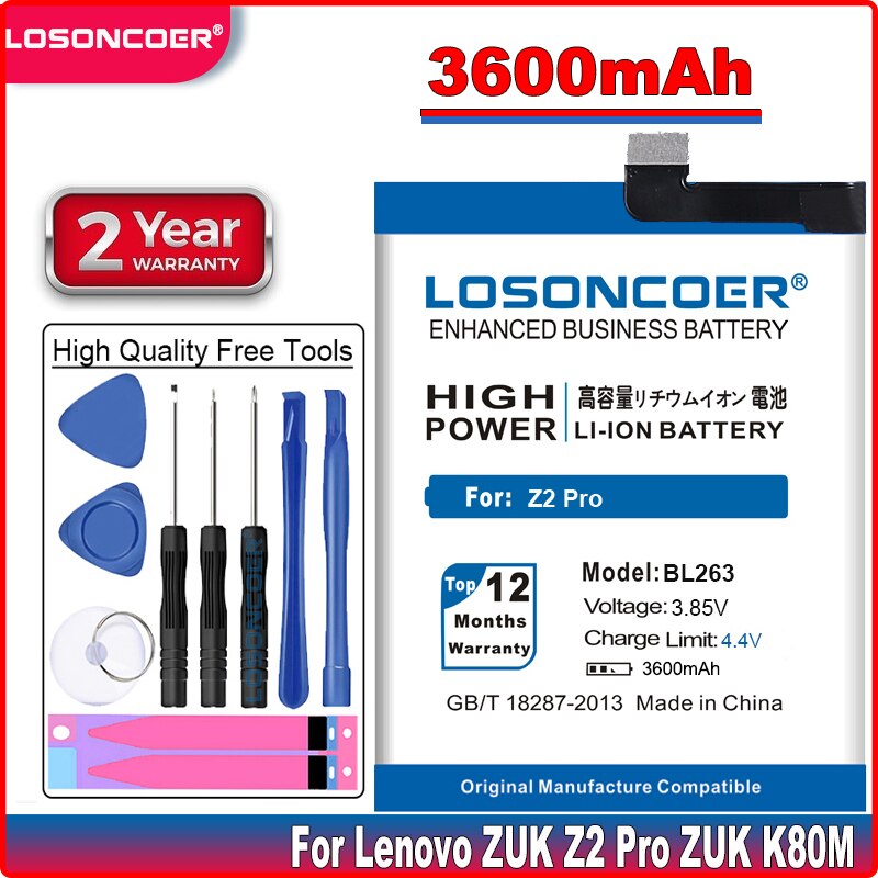 Аккумулятор LOSONCOER 3600 мАч BL263 подходит для аккумулятора Lenovo ZUK Z2 Pro ZUK K80M,K920