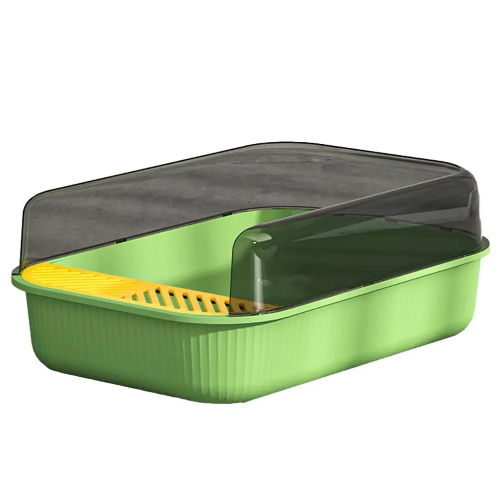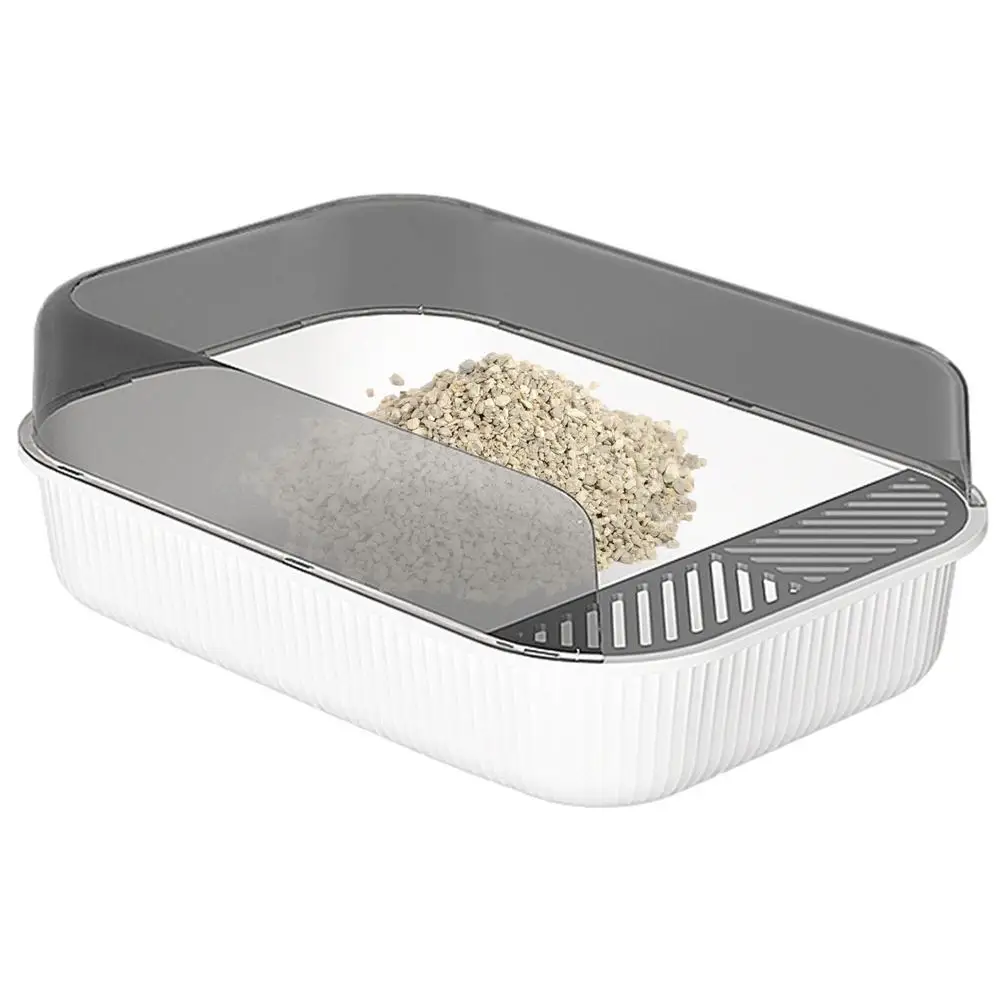 1. 【Открытая конструкция】 Открытый лоток для туалета соответствует привычкам кошек, с достаточным пространством для свободного входа и выхода кошек, улучшает циркуляцию свежего воздуха и обеспечивает комфортную среду в туалете.