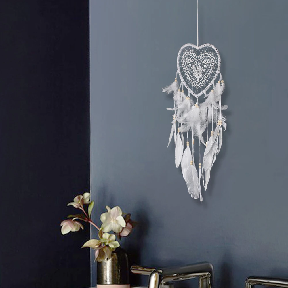 Ловец снов, сердце, перо, бусины, настенное украшение для комнаты девочки, машины, офиса, окна, украшение, перья, настенные украшения