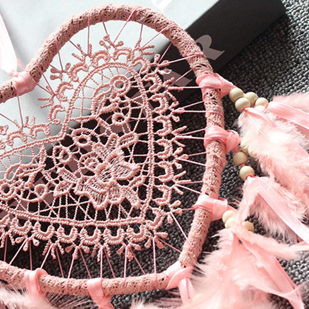 Ловец снов сердце бисер с перьями Настенный декор для девушки комнаты украшение