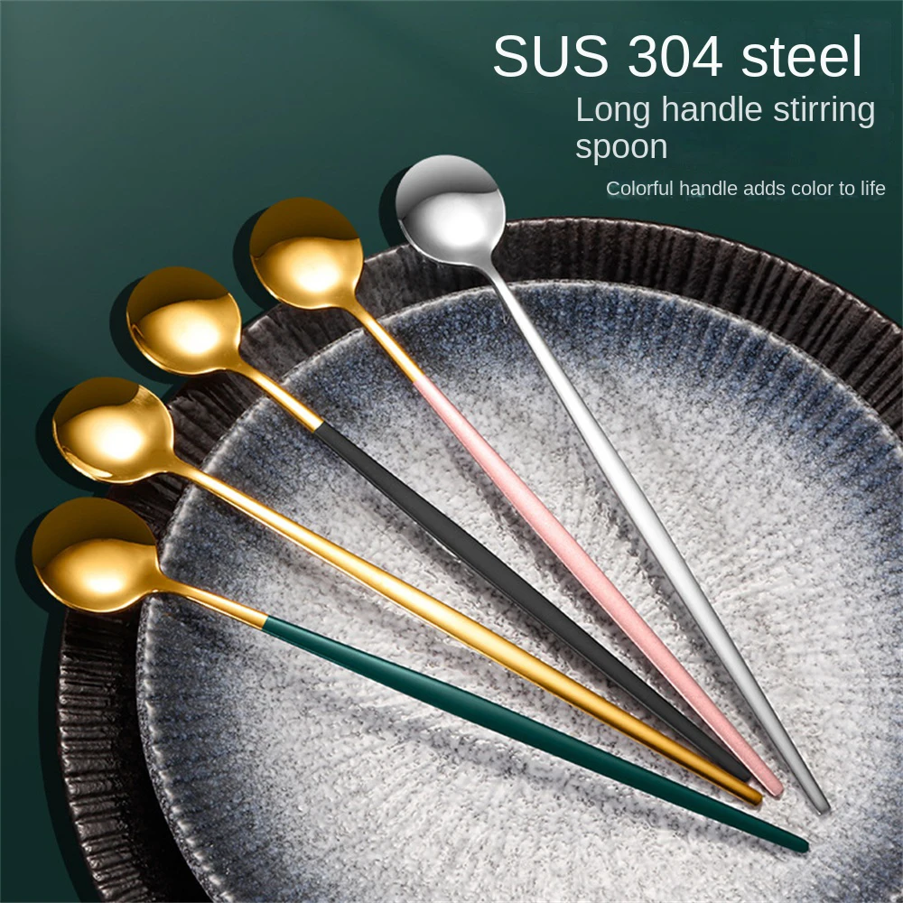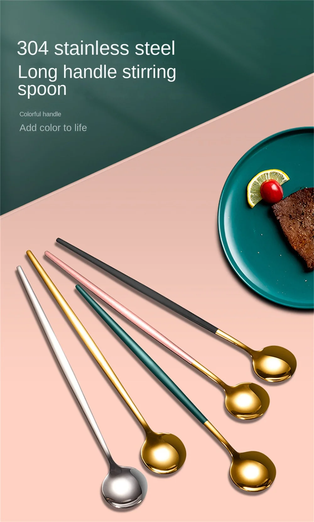 1.304 нержавеющая сталь, длинная ручка смешивания ложка красочная ручка добавляет цвет к жизни