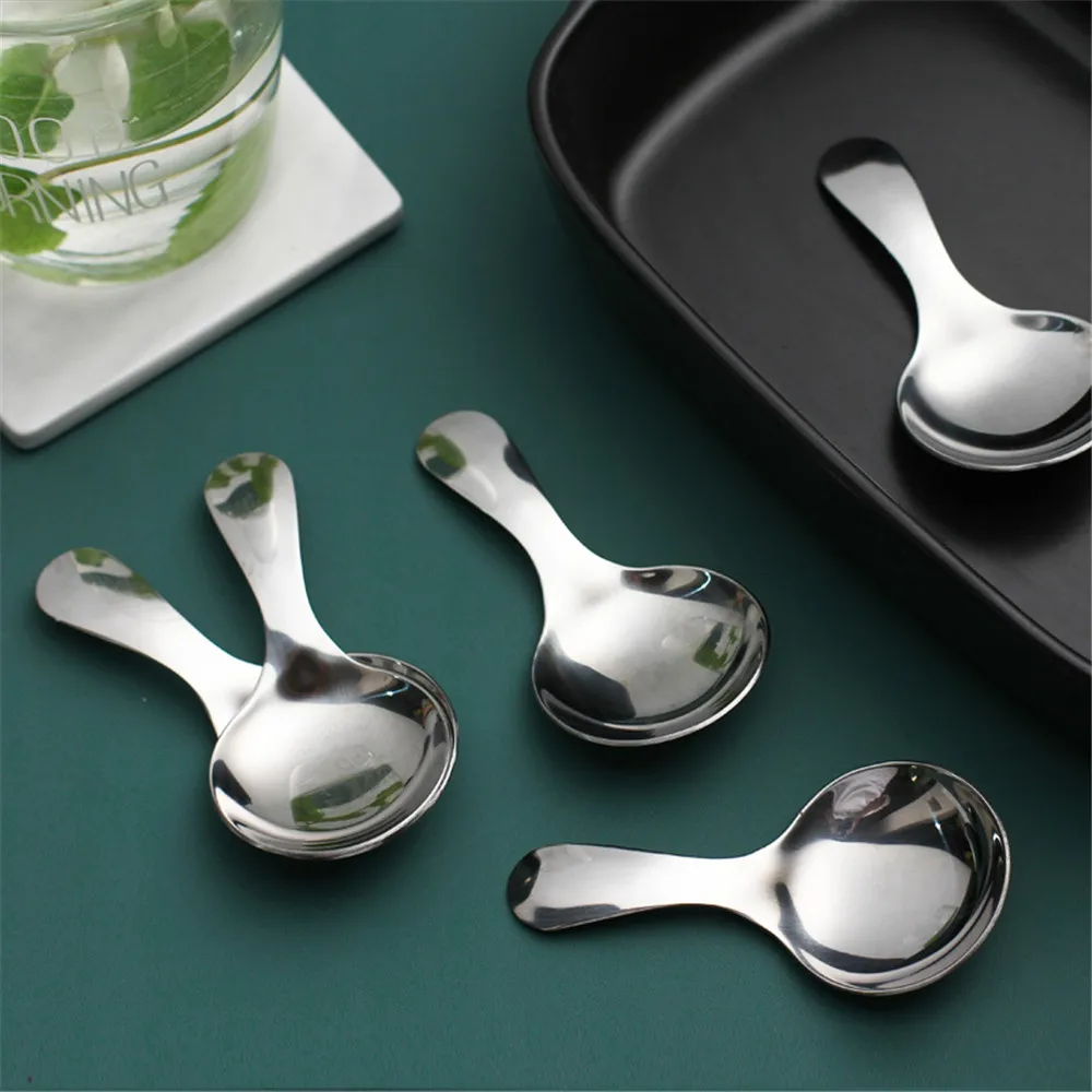 Ложка из нержавеющей стали с короткой ручкой, приятная текстурированная ложка для сахарной соли, специй, приправ, чая, кофе, Маленькая детская кухонная утварь