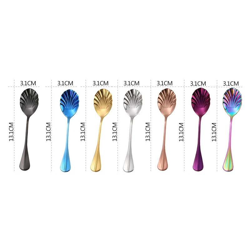 Ложка из нержавеющей стали в форме ракушки с длинной ручкой, десертная ложка для ресторана, ложка для мороженого, кухонные аксессуары, посуда