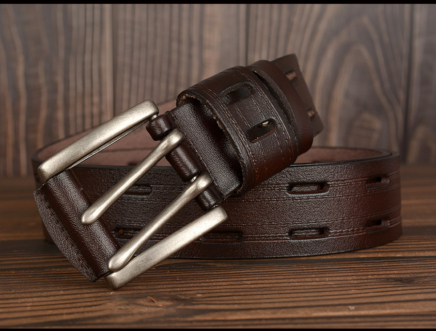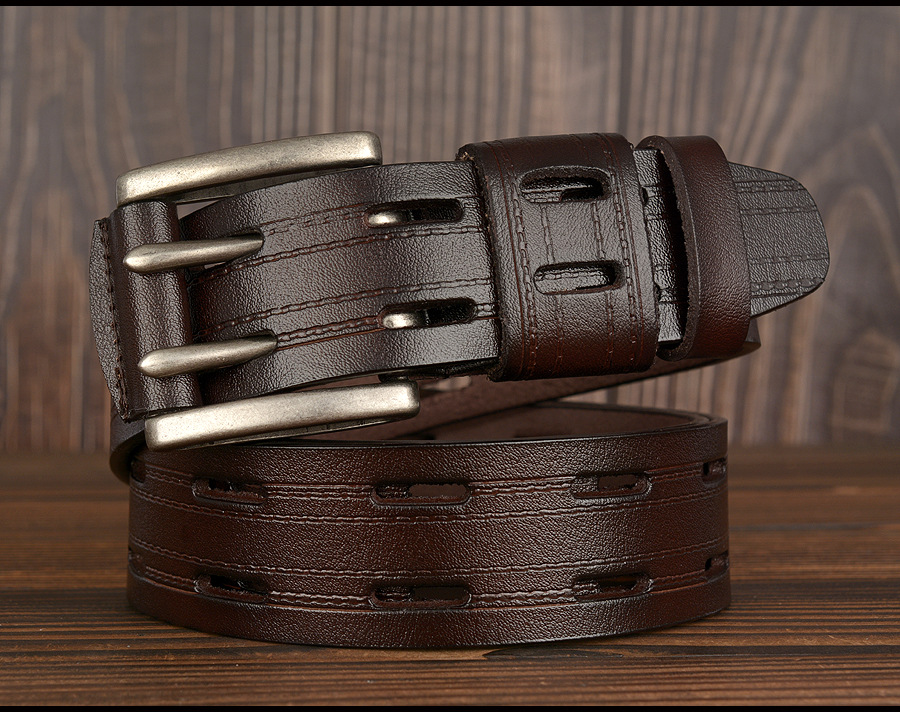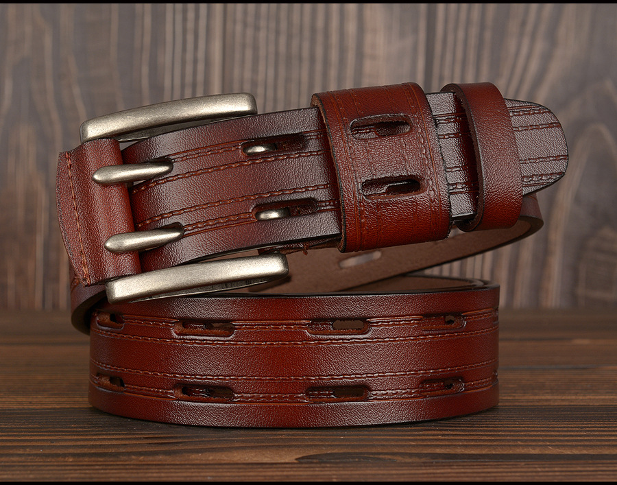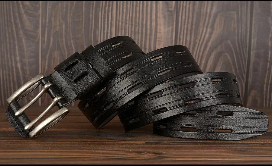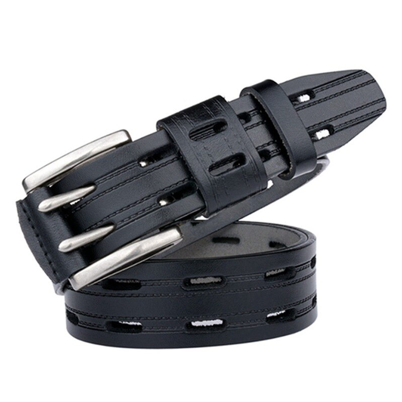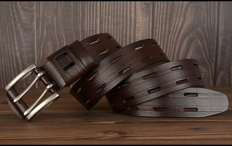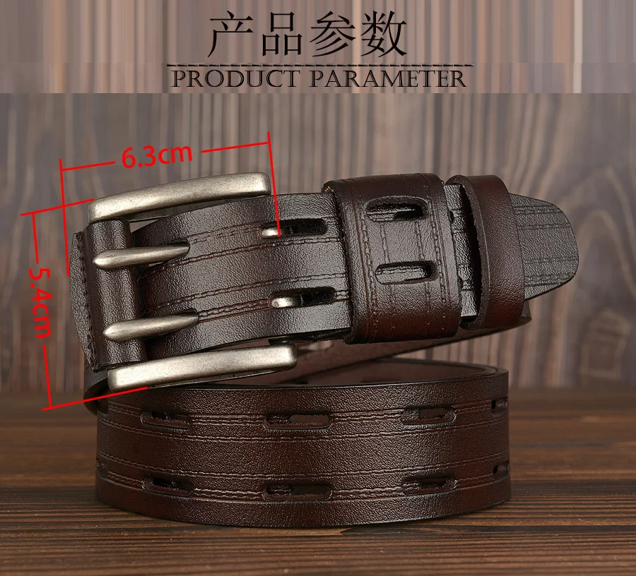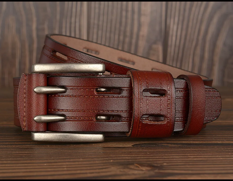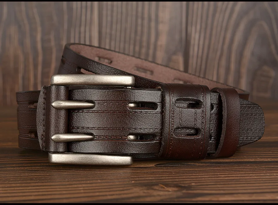 Лучшие высококачественные ремни из натуральной кожи для мужчин, люксовый бренд, мужской ремень с двойной пряжкой, винтажные джинсы, воловья кожа, модный подарок