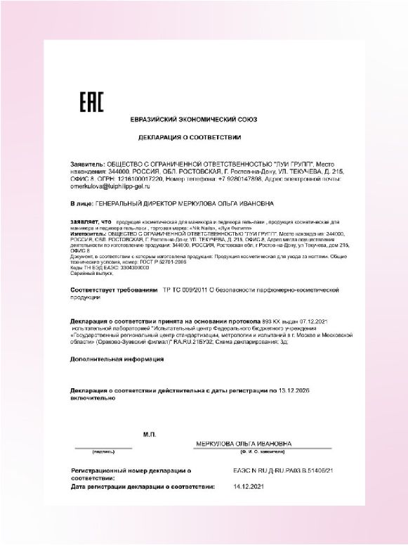 диметиконол, сополимер акрилатов, изопропиловый спирт, микрокристаллический воск, триметилолпропантриакрилат, Isopropyl Titanium Triisostearate, Bismuth chloride oxide, Sodium aluminosilicate violet, Iron hydroxide oxide yellow
