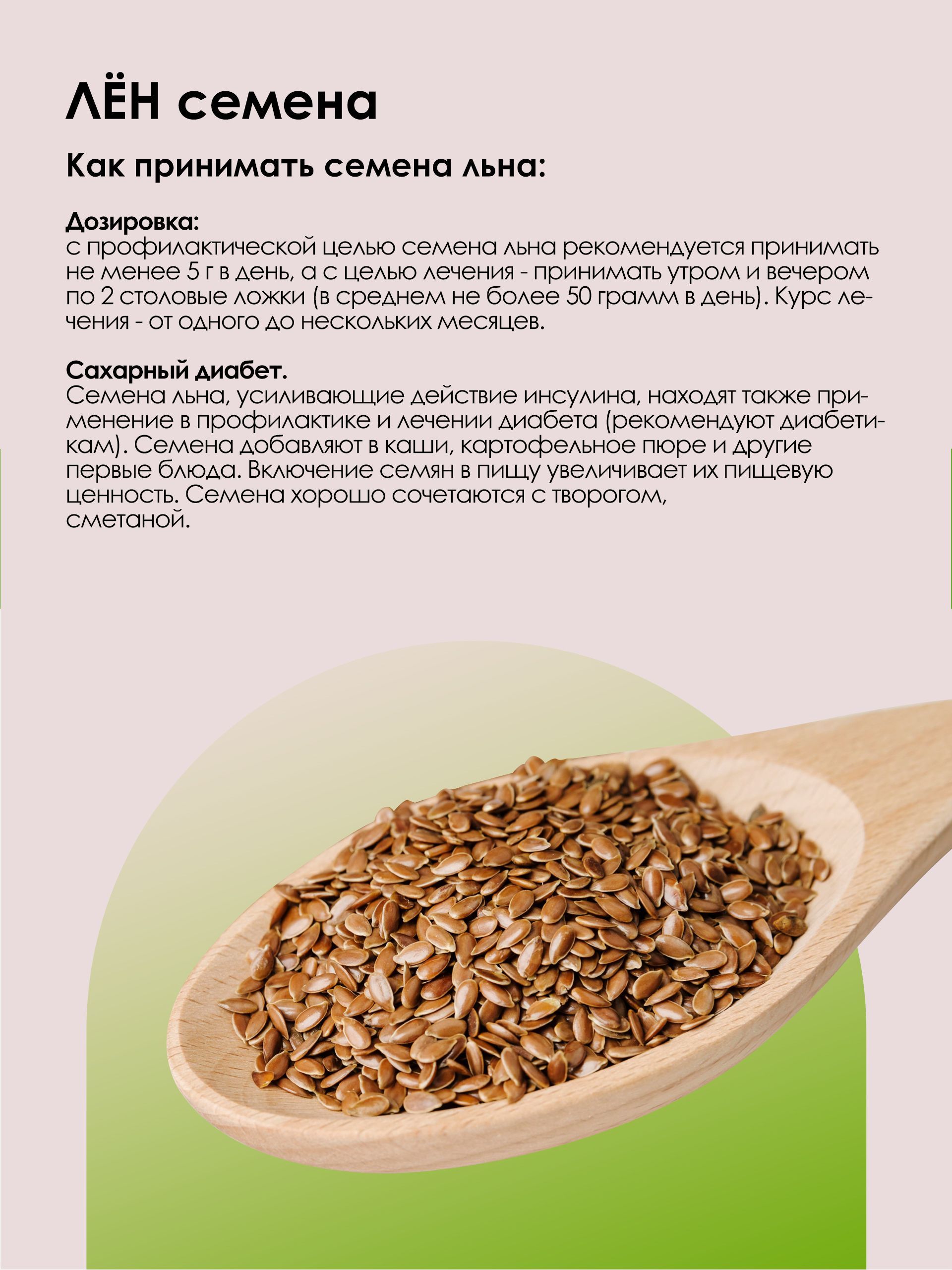 - Без примесей. Рекомендации по применению.Семена льна обычно принимают в пищу в грубо измельченном виде с большим количеством жидкости. Так как разбухание льняного семени должно происходить непосредственно в кишечнике, размачивать его предварительно не рекомендуется (лишь за исключением случаев воспаления в кишечнике).Добавка к хлебобулочным изделиям.Семена льна отлично сочетаются с булочками, хлебом. Льняное семя. Ими часто посыпают хлебцы, а также некоторые кондитерские изделия.Заправка для салатов. Полезная добавка с овощным салатам, сочетается со множеством продуктов.Заправка для полезных смузи и коктейлей.Максимальную пользу к своим коктейлям и другим полезным напиткам можно принести за счет добавления пищевых льняных семян. .Герметичная упаковка сохраняет