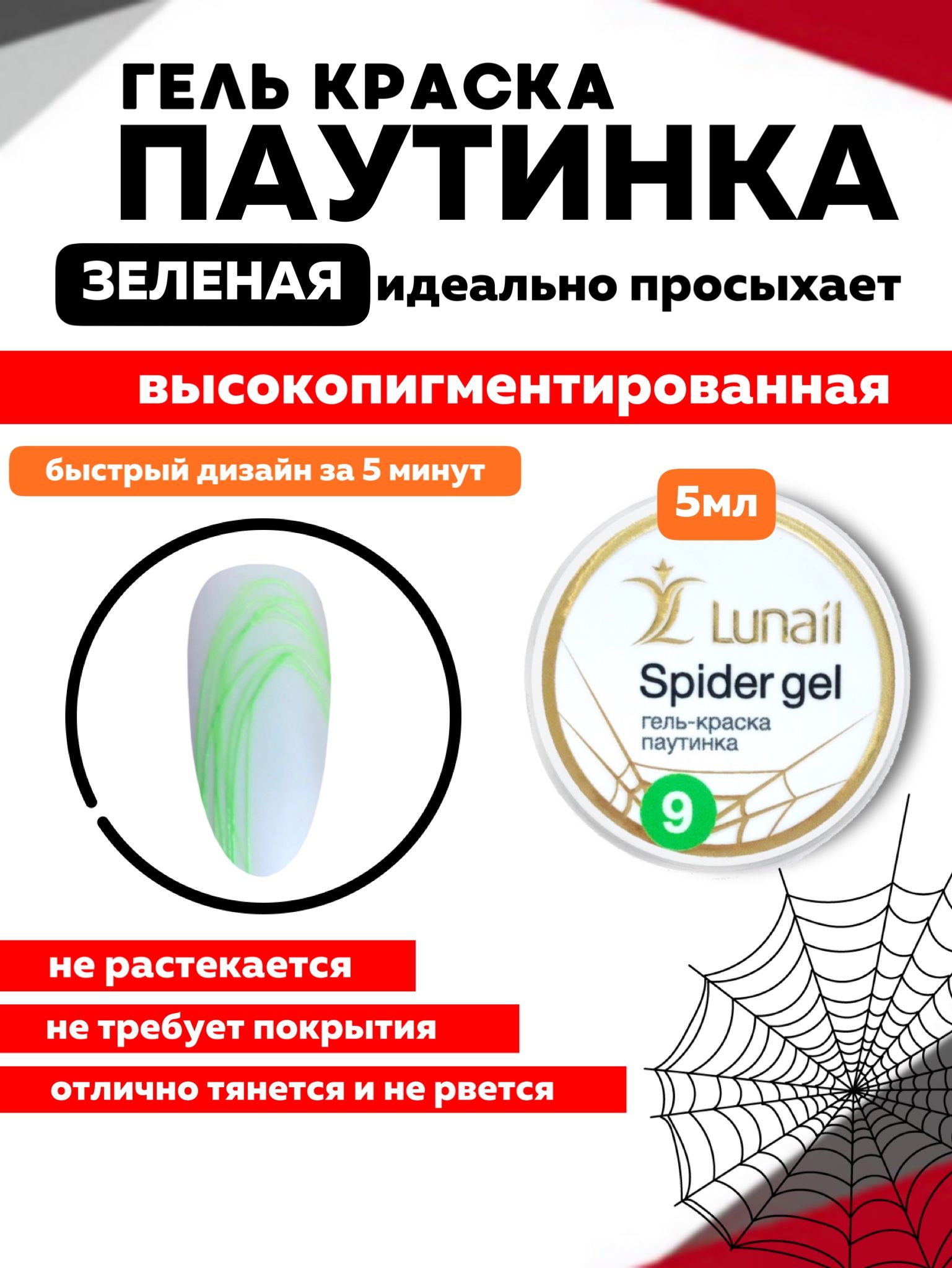 Lunail Паутинка для маникюра салатовая, гель паутинка ногтей Spider gel Лунейл, 5 мл
