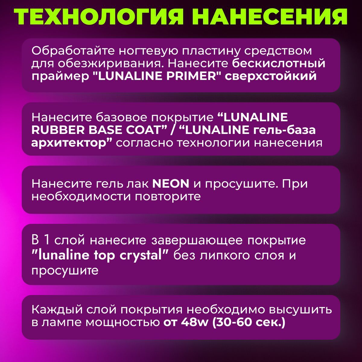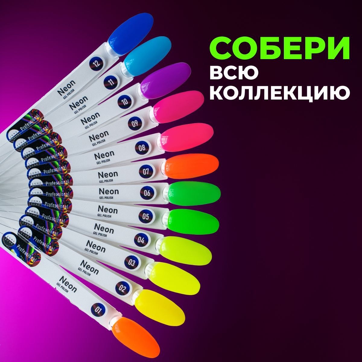 LUNALINE Неоновый гель лак для ногтей, цветной гель-лак для маникюра и педикюра, UV Neon цвет 10, 8 мл
