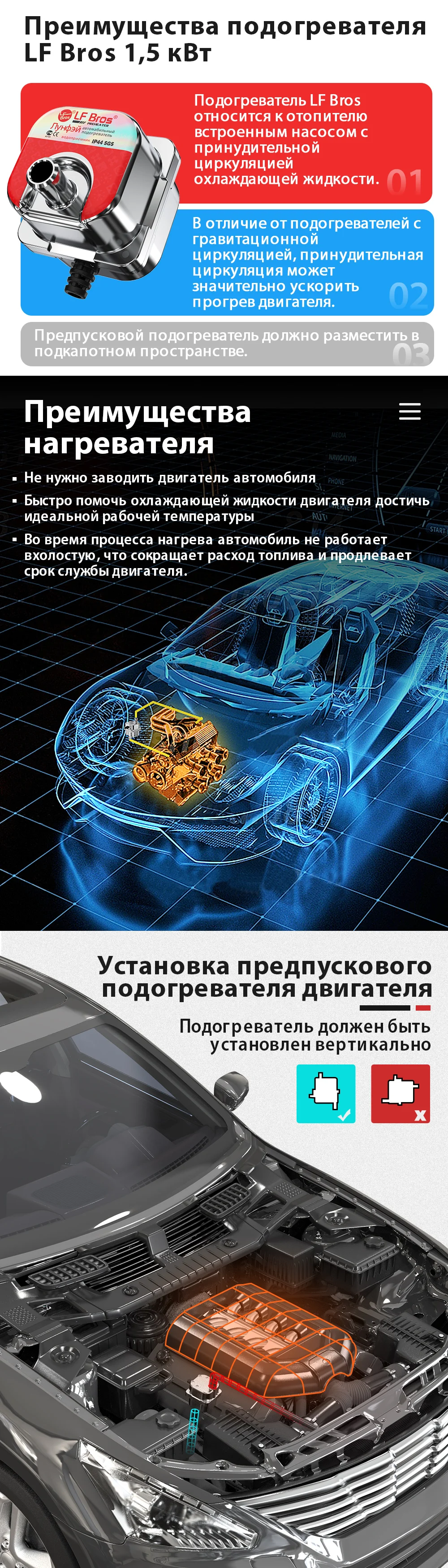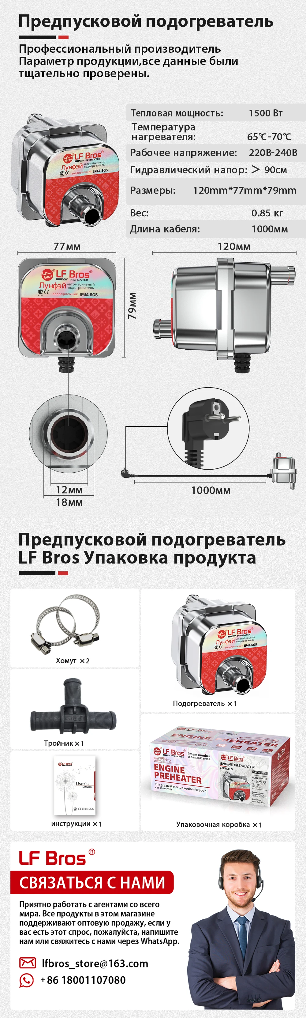 Лунфэй Предпусковой Подогреватель Двигателя 1500Вт Парковочный Отопитель 220В 240В Подогреватели Охлаждающей Жидкости Антифриза Встроенный Термостат Для Выхлопных Газов Автомобиля Объемом Менее 1,8 Л