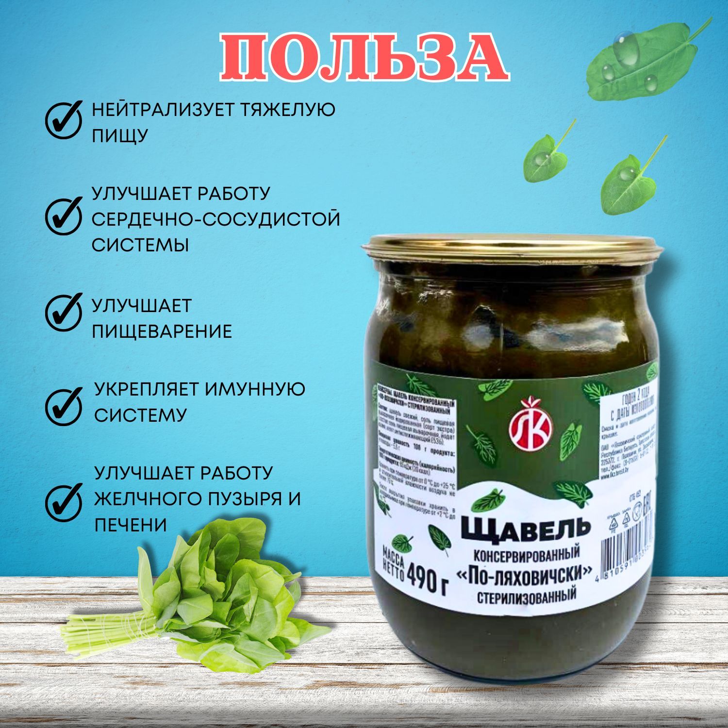 Ляховичский консервный завод Щавель консервированный "По-Ляховичски" стерилизованный, для первых и вторых блюд, соусов, начинка для пирогов, 3 банки по 490 гр