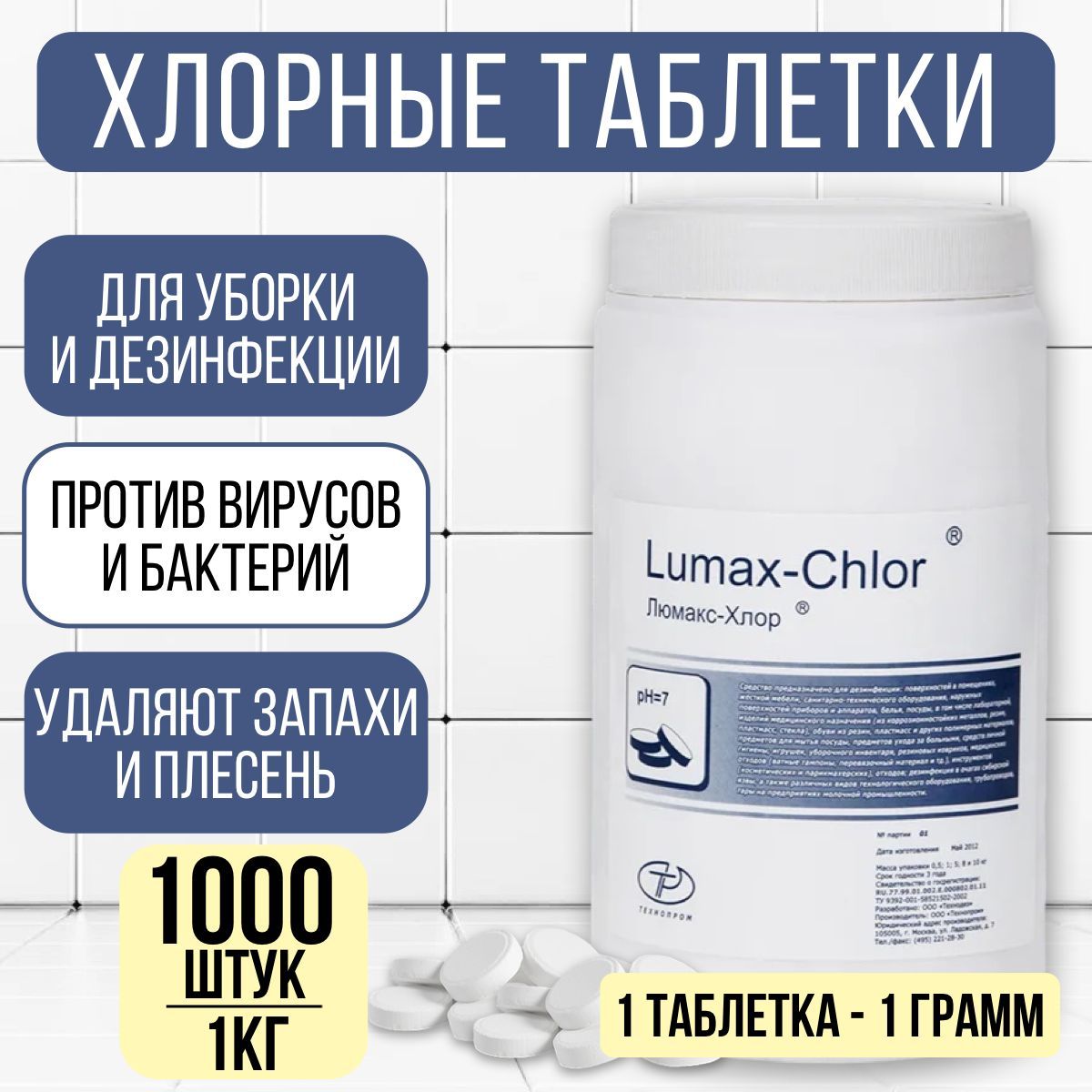 1 банка Люмакс хлор 1 кг 1000 таб