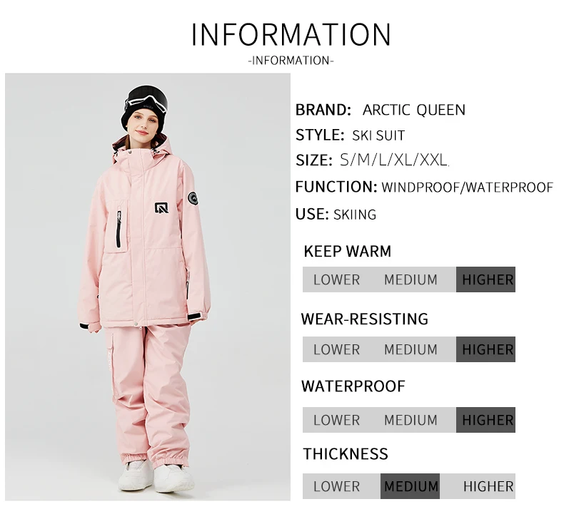 Лыжная одежда ARCTIC QUEEN для женщин и мужчин, лыжная одежда, утепленная и водонепроницаемая Лыжная техника, лыжный костюм, женский лыжный комплект из куртки и брюк