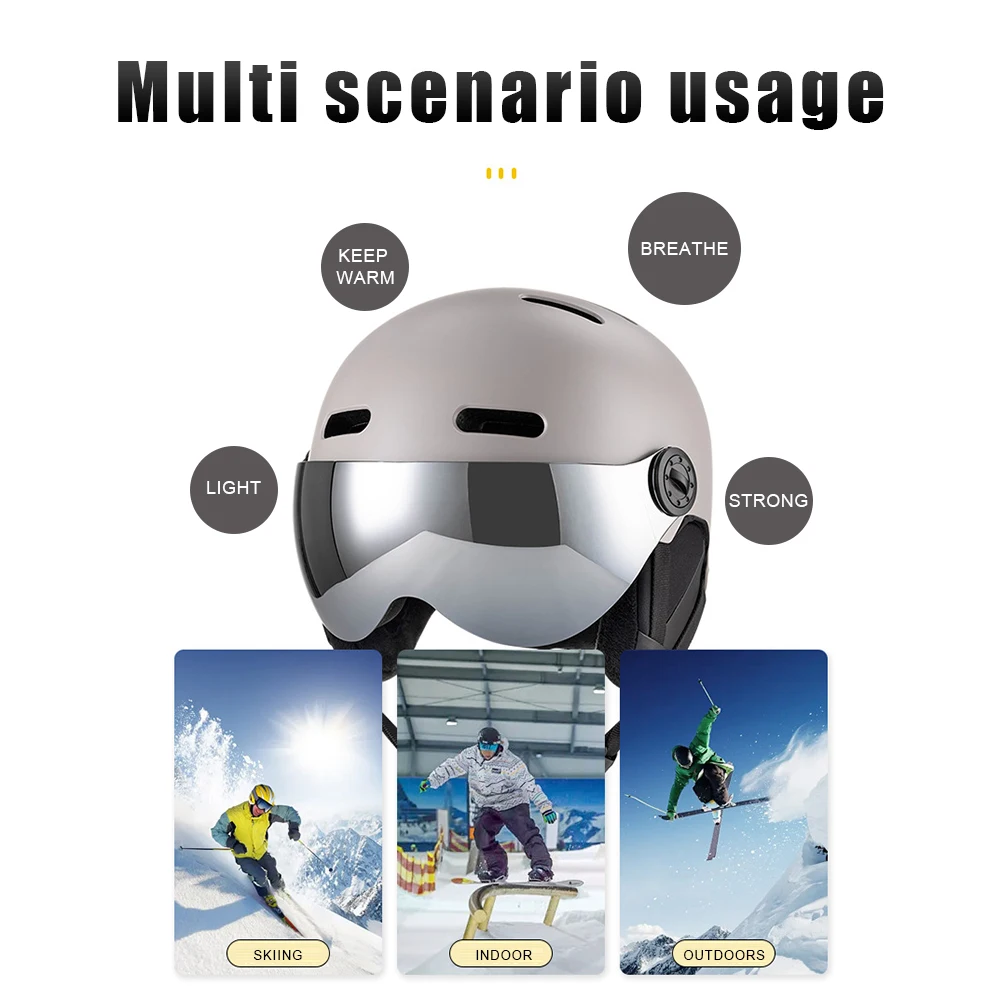 1. Прочный и ударопрочный:Наш лыжный и сноубордический шлем со встроенными очками оснащен корпусом из АБС-пластика и вкладышем из пенополистирола, обеспечивающим отличную ударопрочность, амортизацию и долговечность. Он обеспечивает надежную защиту головы во время активного отдыха, особенно при катании на лыжах или СНОУБОРДЕ.