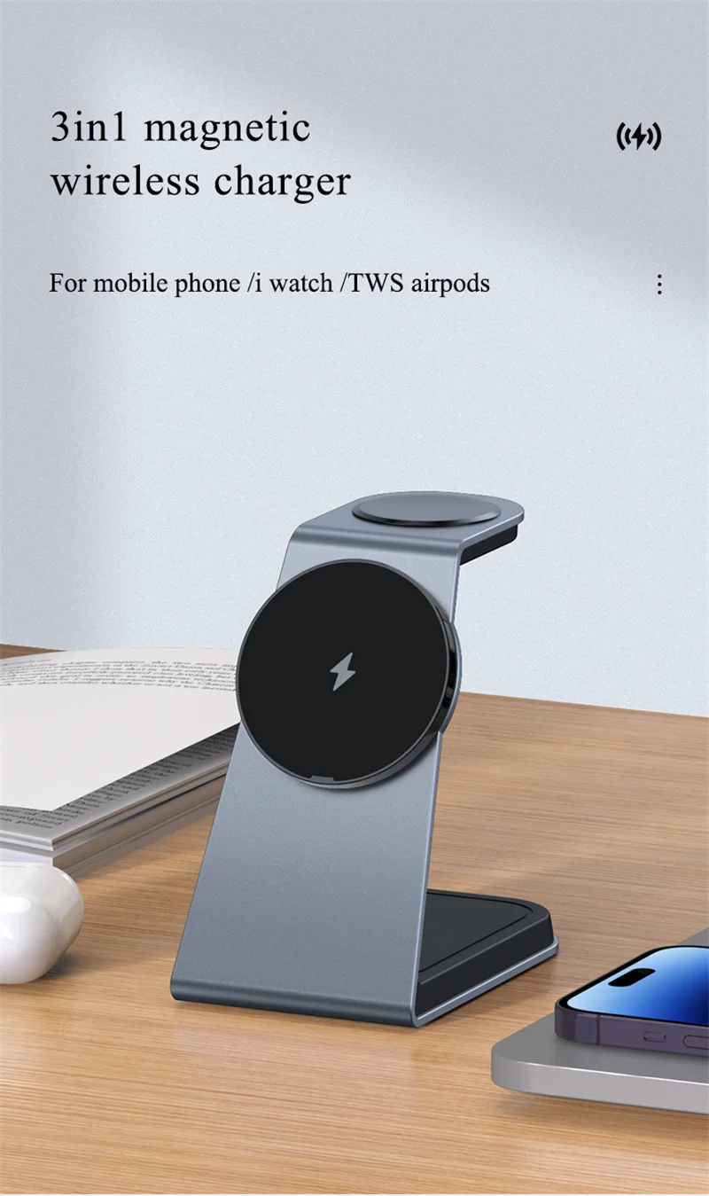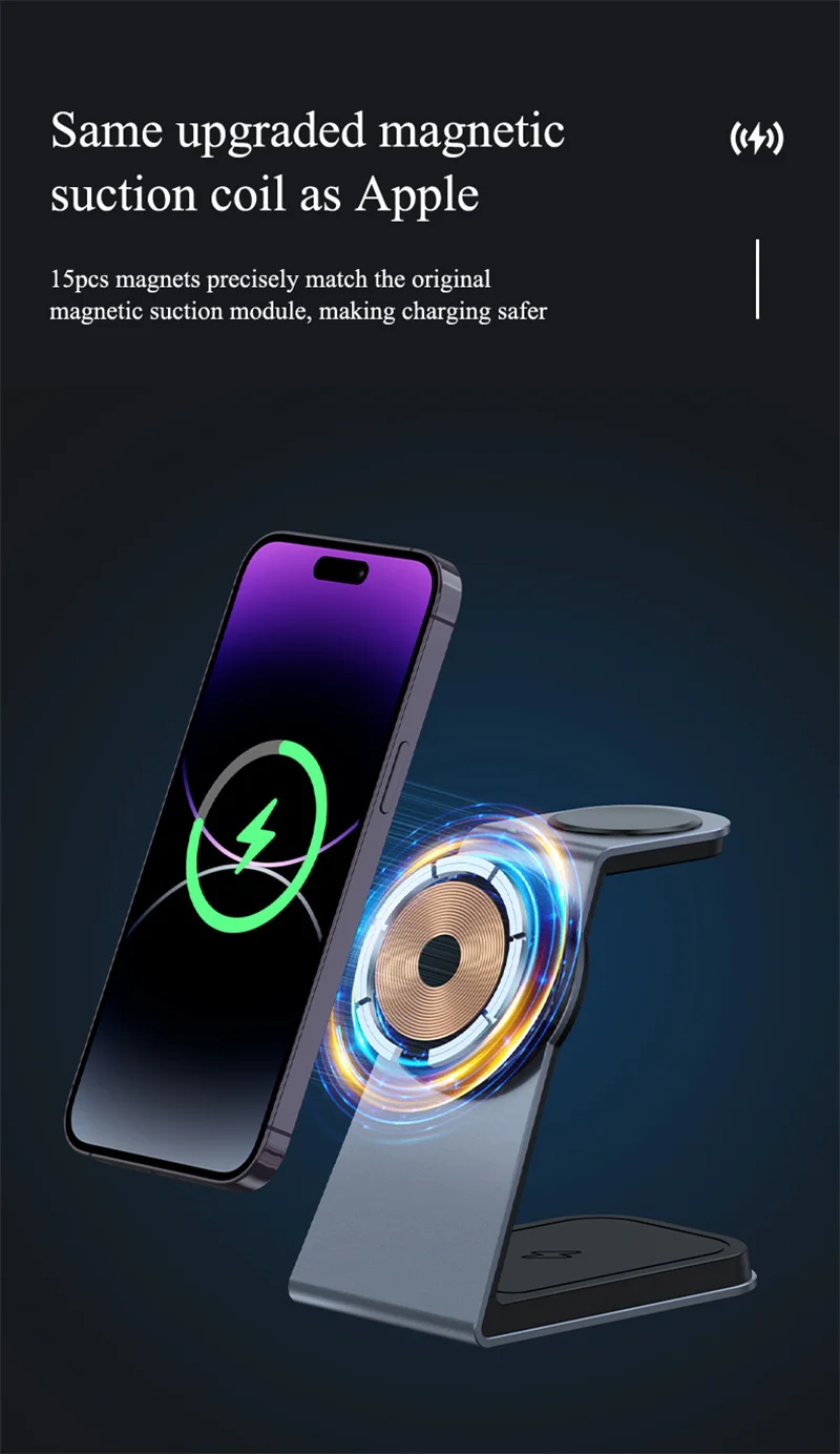 【Обновление алюминия 3 в 1 Беспроводное зарядное устройствоБеспроводное зарядное устройство 3 в 1 изготовлено из высококачественного алюминиевого сплава, которое ускоряет рассеивание тепла и обеспечивает более высокую скорость зарядки, чем пластик. Он также более прочный и долговечный. Эта зарядная станция может заряжать большинство телефонов, поддерживает быструю зарядку нескольких устройств apple одновременно, совместимость с iPhone 14/iPhone 14 Pro/iPhone 14 Pro Max/iPhone 14 Plus/iPhone 13/13 Mini/13 Pro/13 Pro max/12/12 Mini/12 Pro/12 Pro Max, iWatch Ultra/8/7/SE/6/5/4/3/2/1, AirPods 3/2 Pro).
