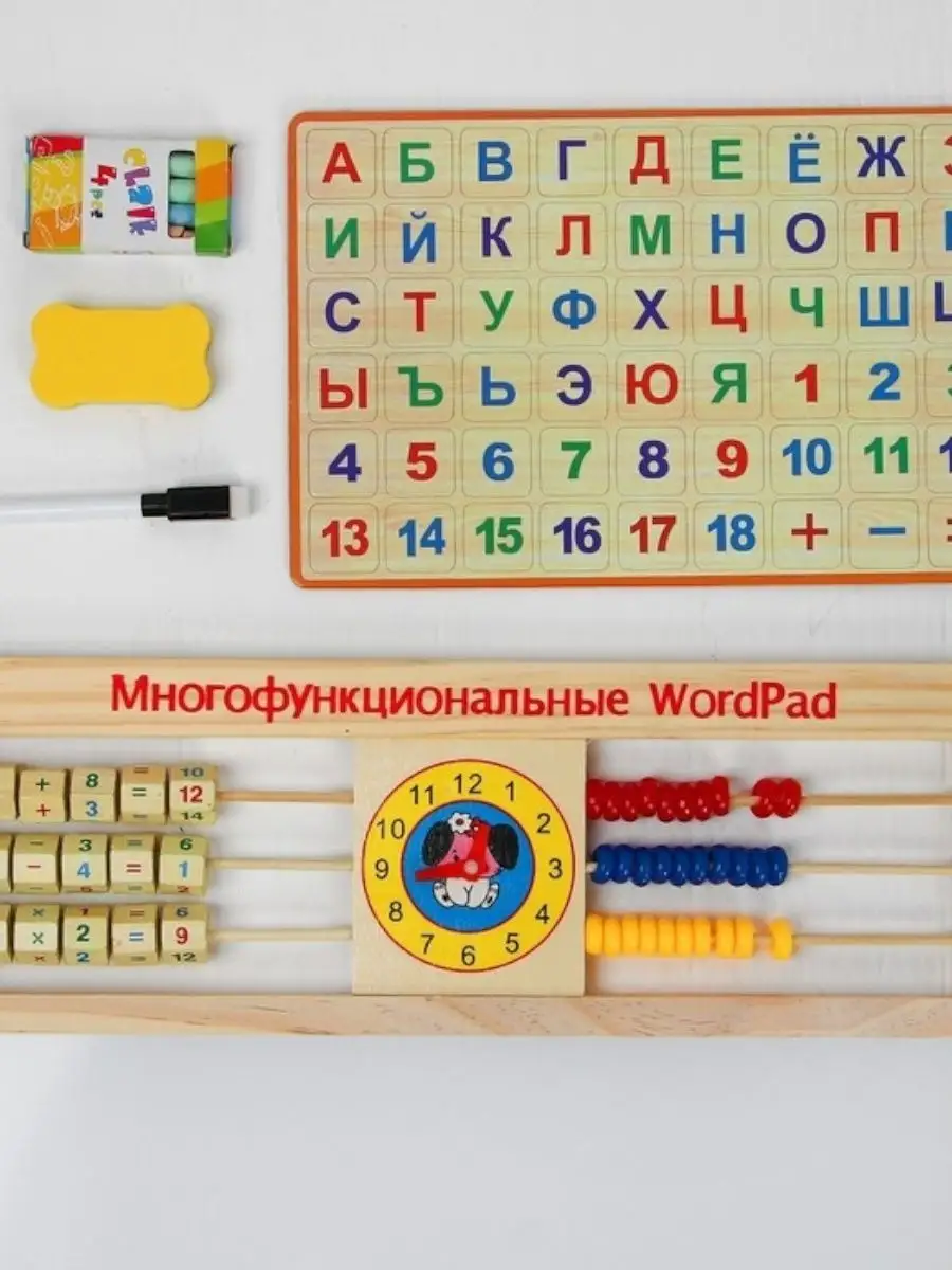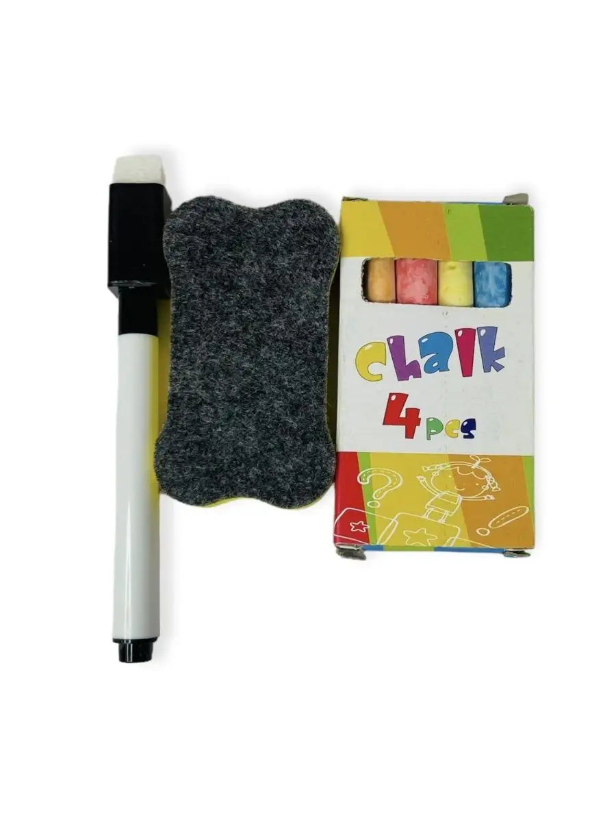 Состав набора магнитный алфавит; набор мелков и губка; маркер
