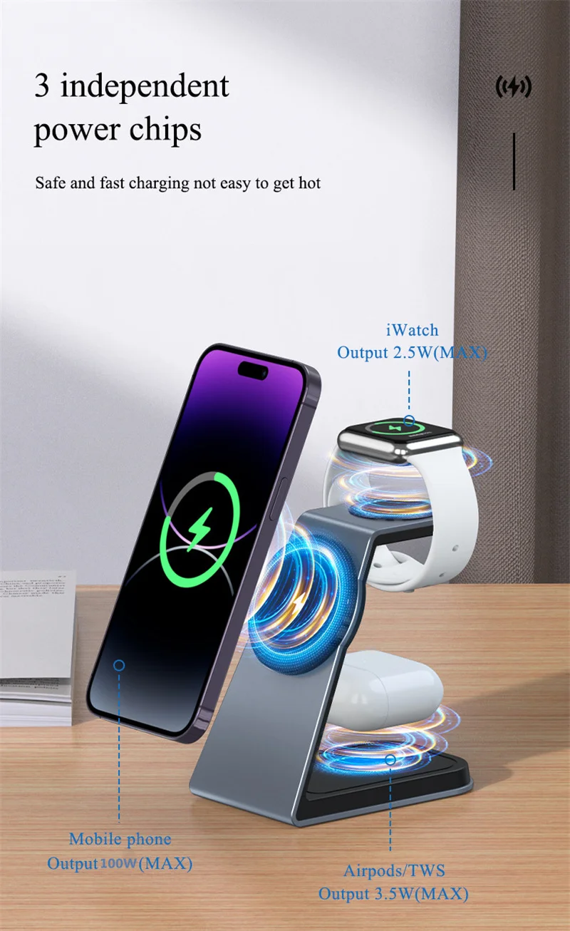 Магнитная портативная беспроводная зарядная подставка 3 в 1, 100 Вт, для iPhone 14, 13, 12 Pro Max, Apple Watch, AirPods, док-станция для быстрой зарядки
