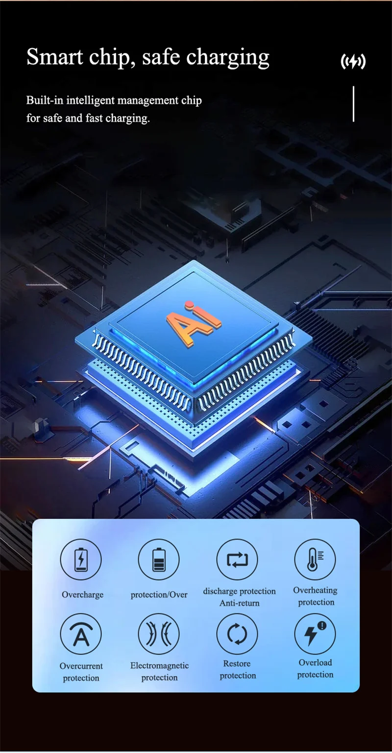 【Безопасность и 100 Вт Быстрая зарядкаЗарядное устройство для iphone с быстрой зарядкой поддерживает однополосный максимальный выход 100 Вт, предлагая вам более эффективный и безопасный опыт зарядки. Встроенные три независимых чипа, заряжаются одновременно без вмешательства. Интеллектуальное обнаружение посторонних объектов, обнаружение входного напряжения, обнаружение перегрузки по току, ограничение пикового значения катушки, ограничение перегрева, быстрая зарядка без нагрева, чтобы обеспечить получение телефона в безопасном рабочем диапазоне.