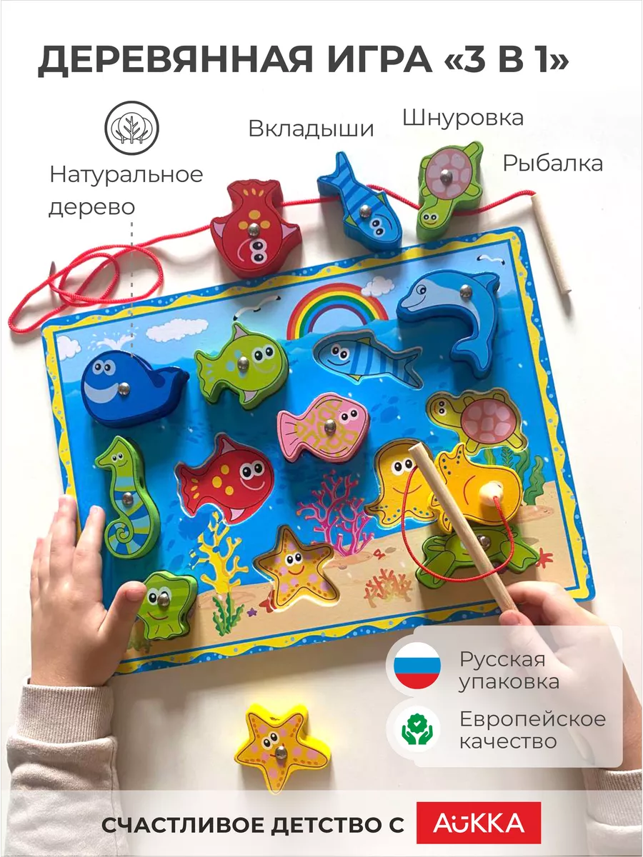 Магнитная рыбалка сортер Развивающая деревянная игрушка