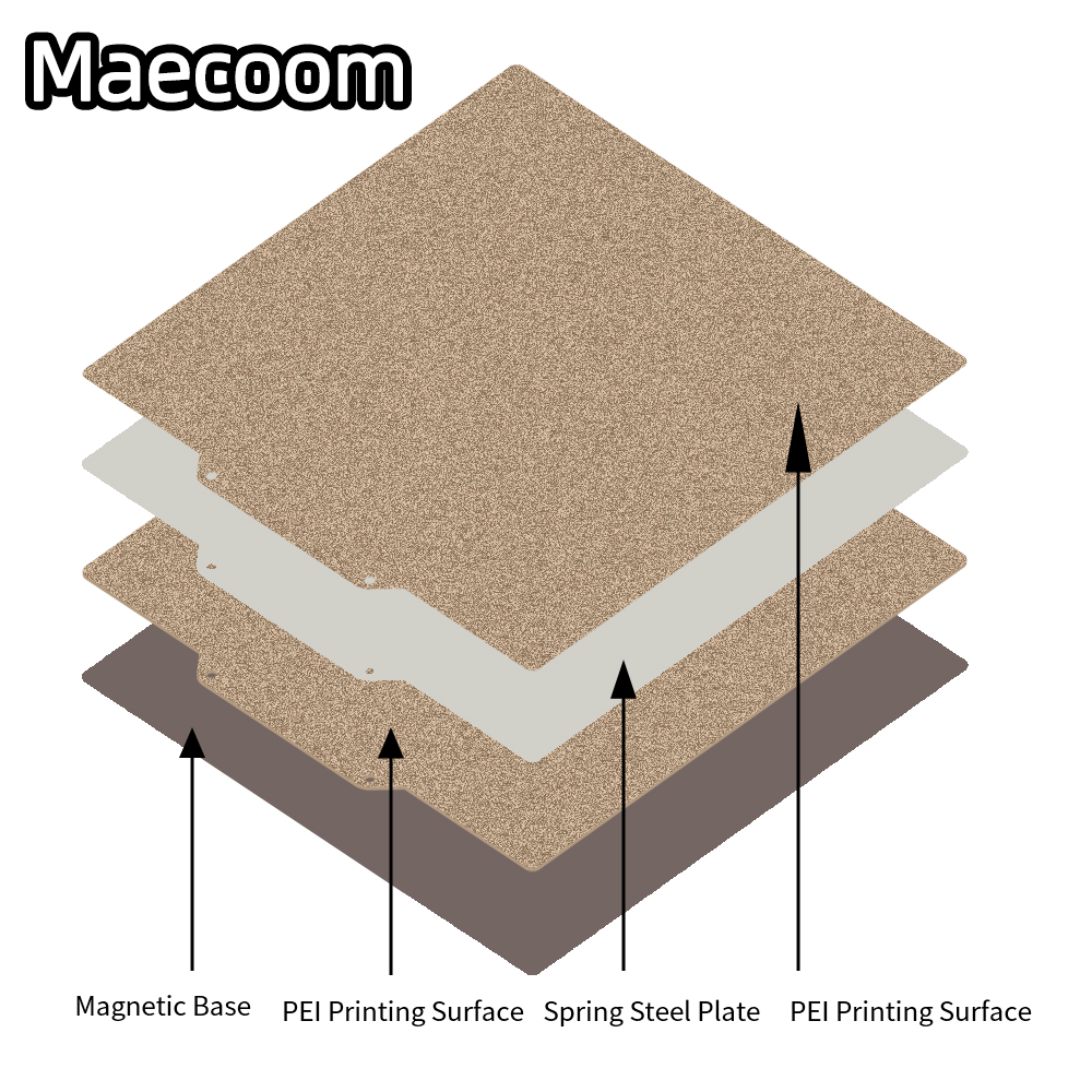 1. После нанесения листа PEI на наш специальный лист из нержавеющей пружины с пружиной Используйте 4 зажима или магнита, чтобы удерживать его на нагревательной подставке, после чего вы сможете наслаждаться печатью. 2. Легко удалите отпечатки, сняв пластину из пружинной стали, согнув ее и сняв отпечаток. Это просто и значительно упрощает процесс удаления печати.