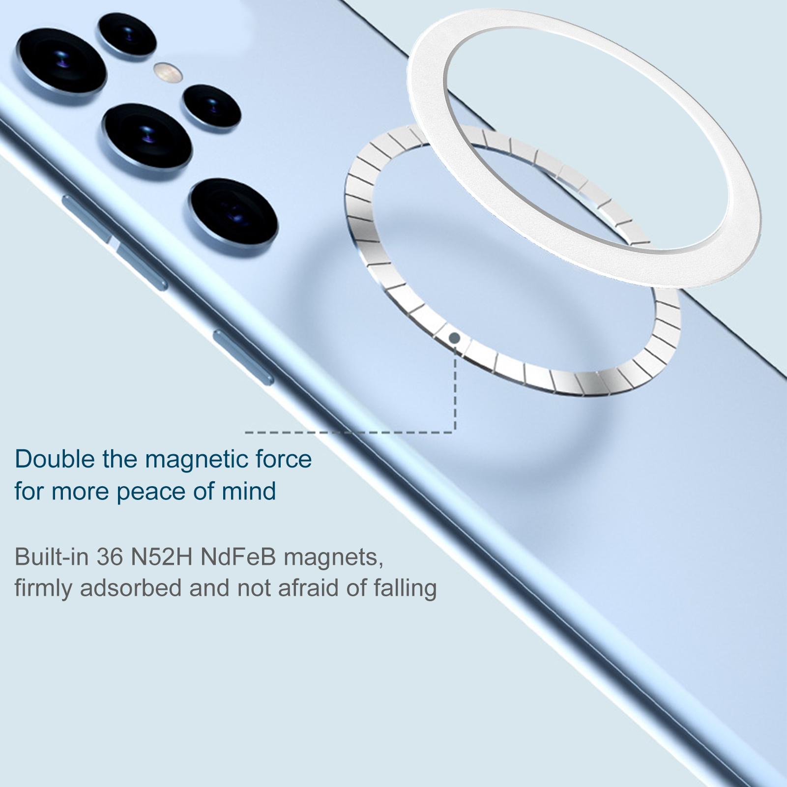 2. Мы подготовили для вас 3 стиля синего, фиолетового и белого магнитных колец для беспроводной зарядки мобильного телефона, которые вы можете выбрать в соответствии с вашими предпочтениями.
