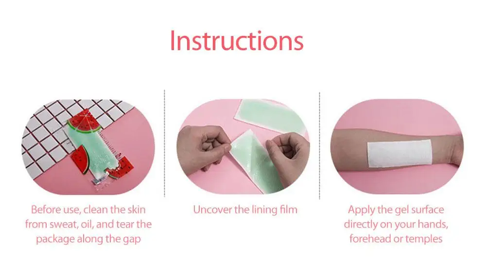 Способ применения: Перед использованием очистите эпидермис от пота и жира, затем снимите прозрачную пленку и приклейте ее к месту, которое необходимо охладить, например, ко лбу, руке и т. Д.
