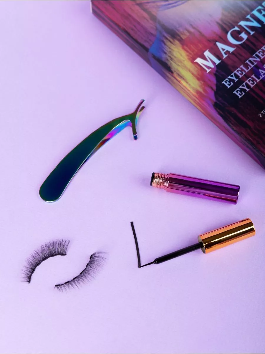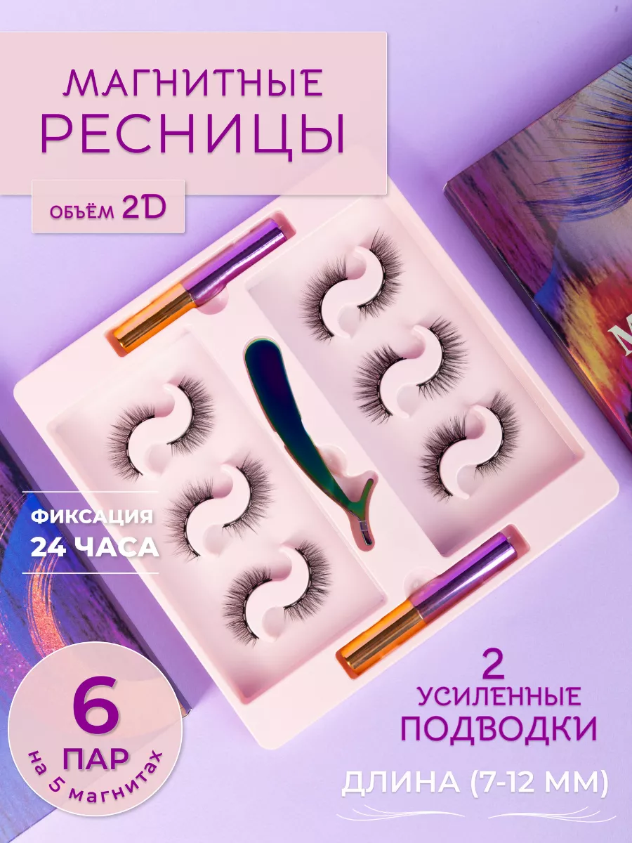 Комплектация Щипцы металлические - 1шт; Подарочная упаковка -1шт; Магнитные ресницы - 6 пар, 5 пар, 10 пар, 3 пары; Магнитная подводка ДВОЙНОЙ силы для магнитных ресниц - 1шт, 2 шт