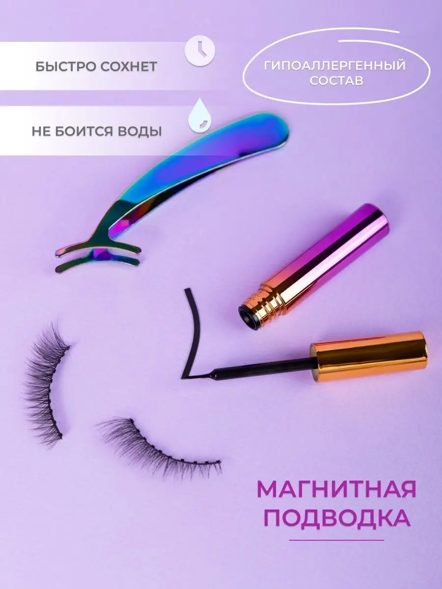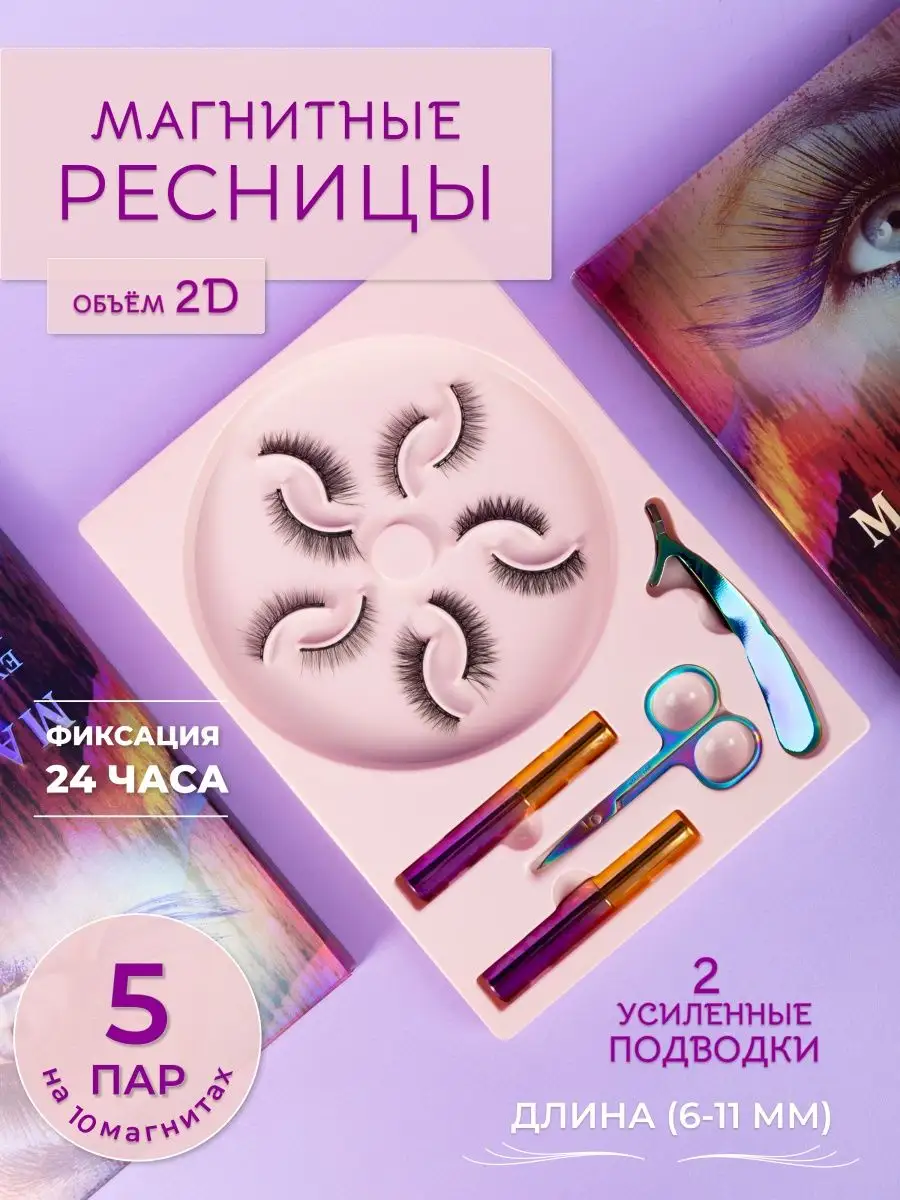 Комплектация Щипцы металлические 1шт; Подарочная упаковка -1 шт; Магнитные ресницы - 6 пар, 5 пар, 10 пар, 3 пары; Магнитная подводка ДВОЙНОЙ силы для магнитных ресниц - 1шт, 2 шт