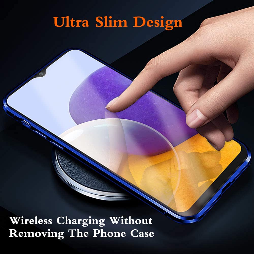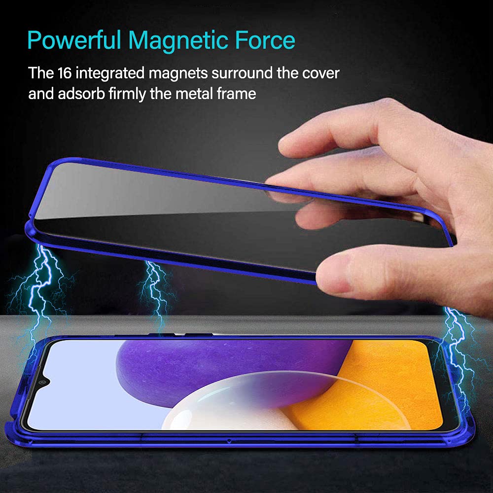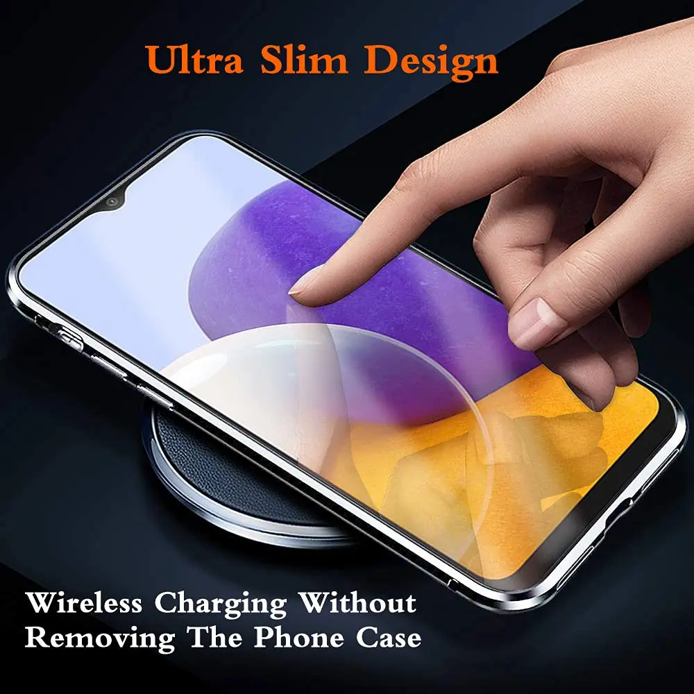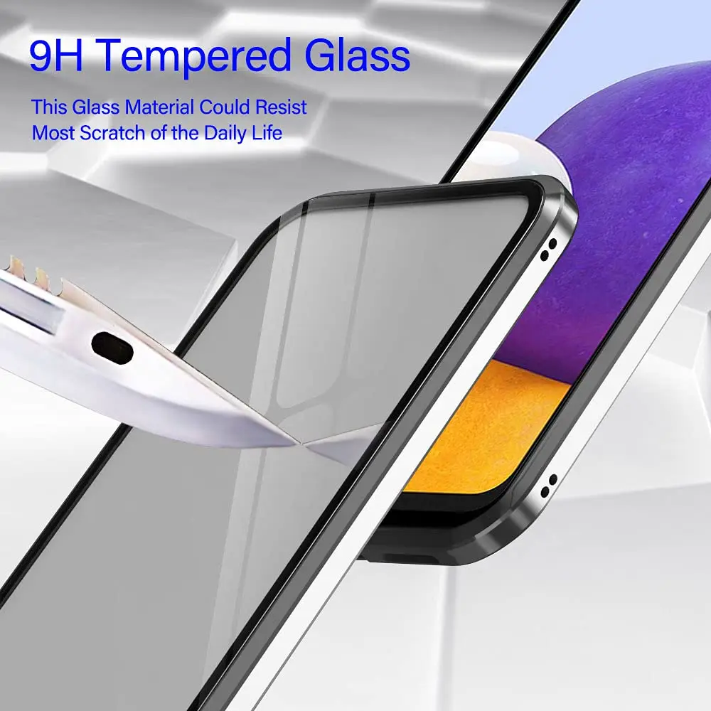 Магнитный чехол для Samsung Galaxy A14, A34, A54, A73, A33, A23, A13, A53, металлическая рамка, двусторонний защитный чехол из закаленного стекла