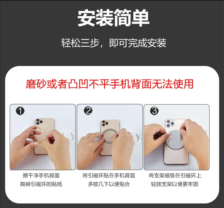 1. Продукт имеет функцию магнитного притяжения, которая подходит для мобильных телефонов с магнитным кольцом притяжения, а также может быть оснащена магнитным листом
