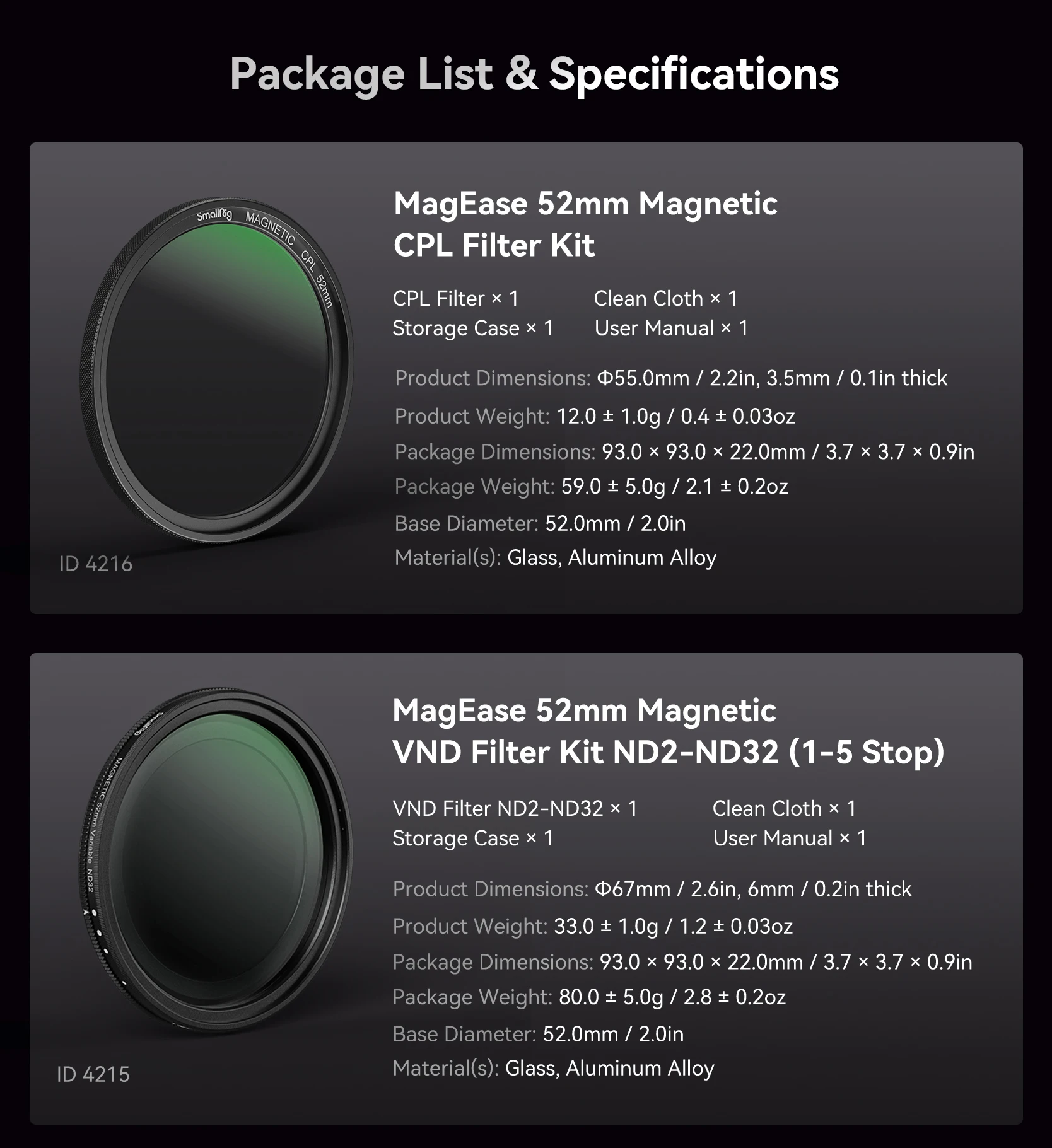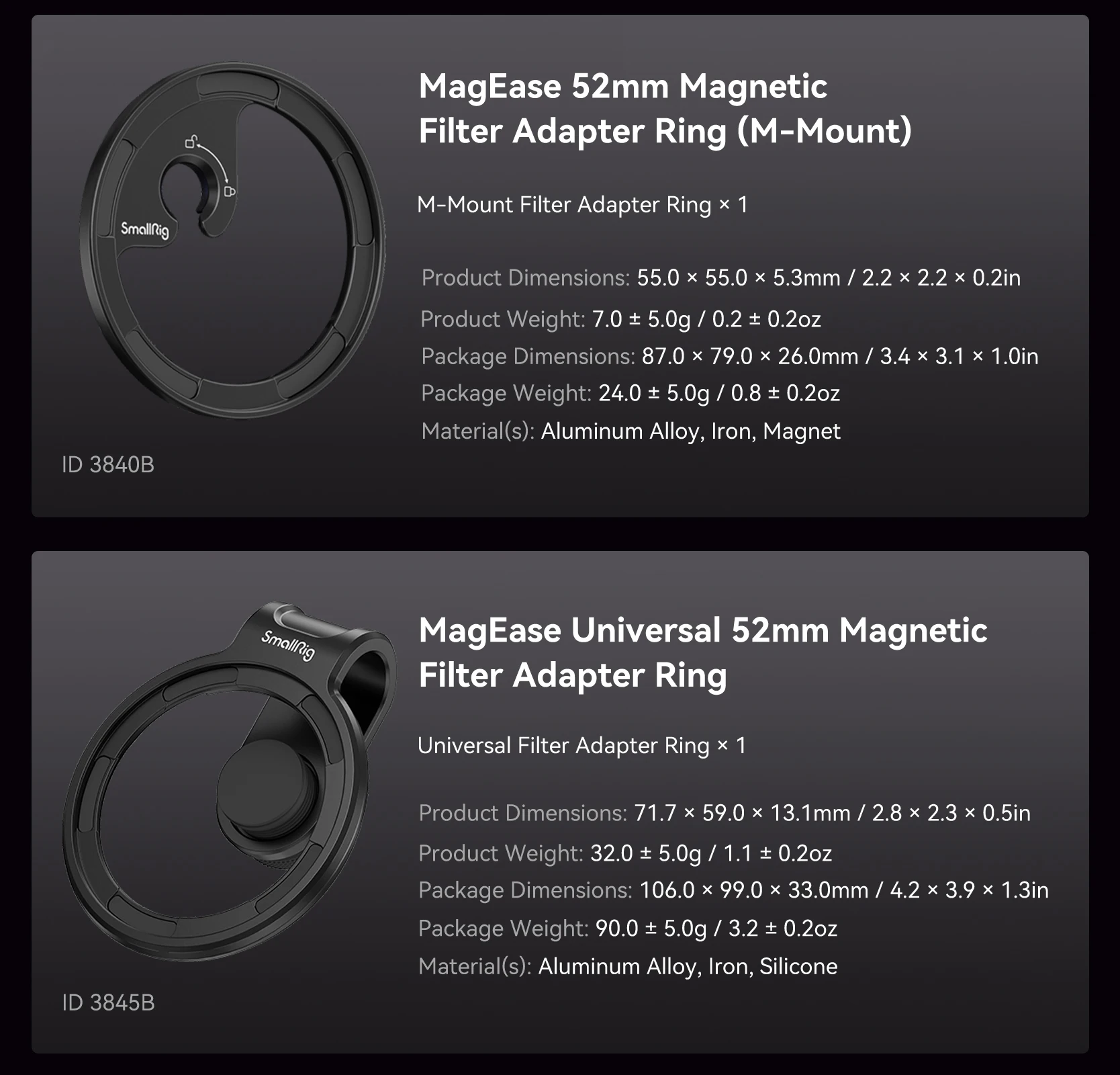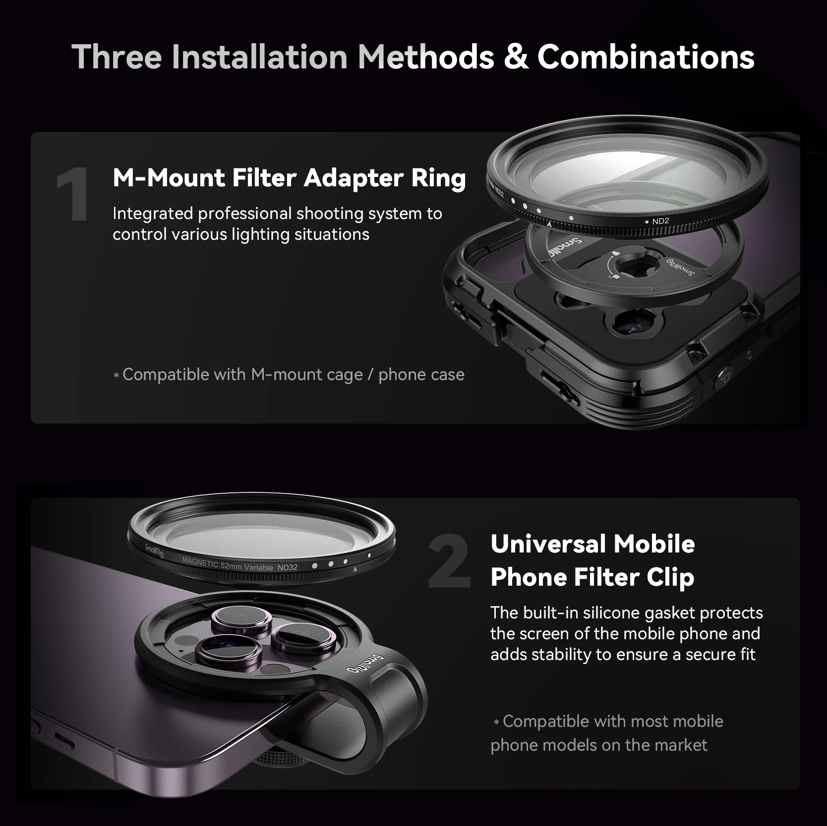 Магнитный фильтр SmallRig MagEase 52 мм для телефона VND CPL 1/4 черное кольцо-адаптер для фильтра для iPhone 14/Xiaomi 12SUltra