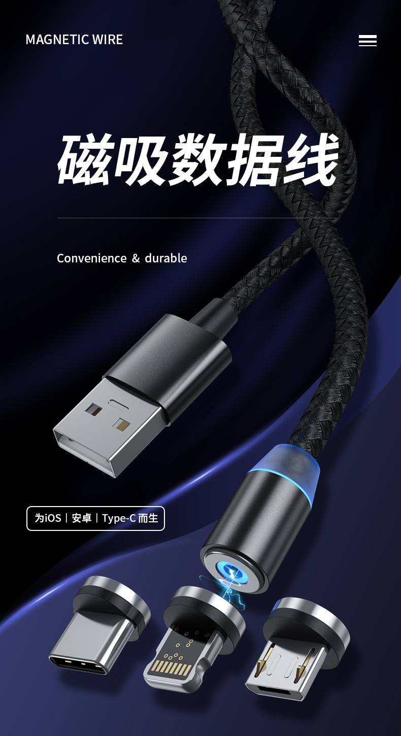 Магнитный кабель для быстрой зарядки и передачи данных, 5 А