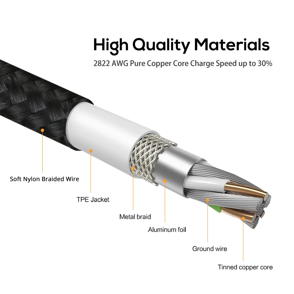 • Материал нейлоновой оплетки:Кабель изготовлен из прочного материала с нейлоновой оплеткой, обеспечивающего долговечность и устойчивость к износу.