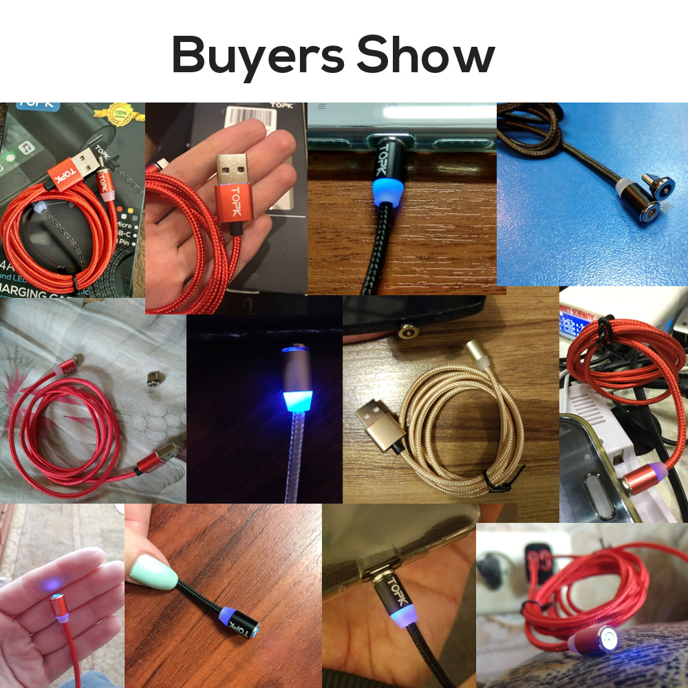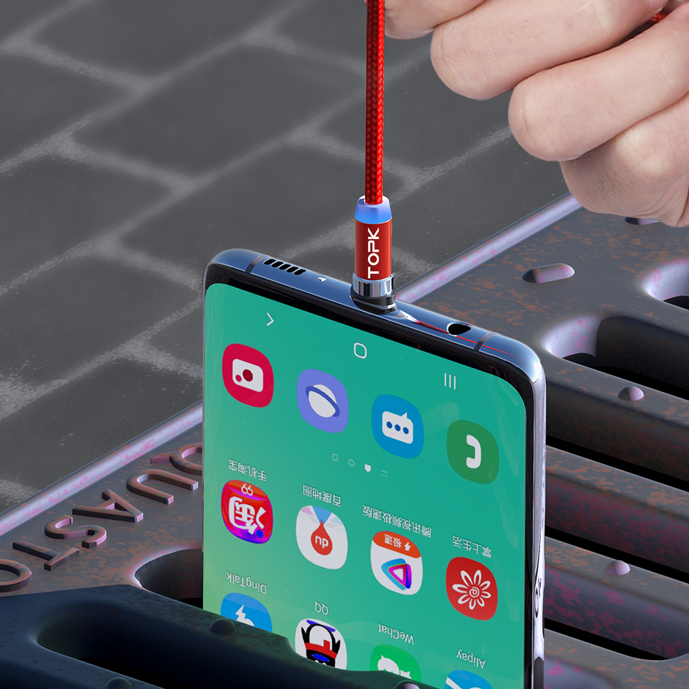 Магнитный зарядный кабель 3 в 1 TOPK вращающийся на 360 градусов Магнитный телефонный зарядный кабель в нейлоновой оплетке Магнитный кабель Micro USB C