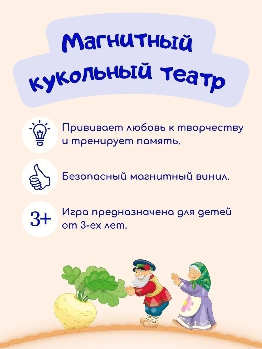 Комплектация Настольная магнитная игра; Кукольный театр - 1шт.; сценарий сказки; магниты герои сказок; рамка вкладыш