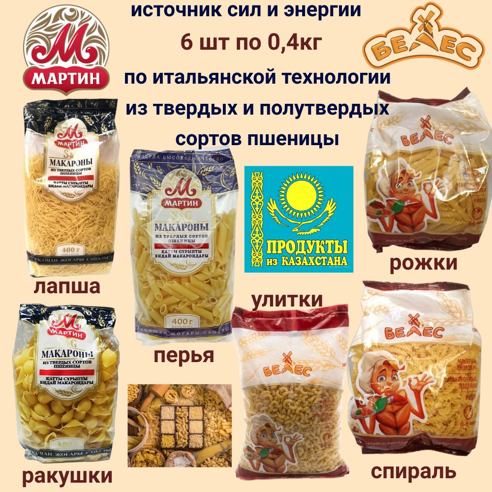 Макаронные изделия 2,4кг - Белес 3 шт*0,4кг и Мартин 3 шт*0,4кг (Казахстан)