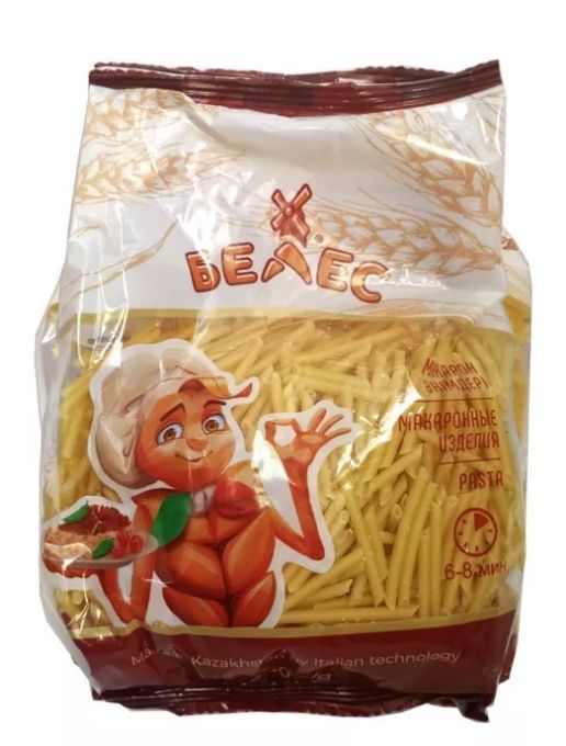 Описание: Макароны Белес производятся в Республике Казахстан по итальянской технологии. В состав входит пшеничная мука высшего сорта без добавления ГМО. Сорт макаронных изделий - высший. Продукт имеет знак HALAL (Халал), что говорит о соответствии высоким стандартам качества сырья и процесса производства