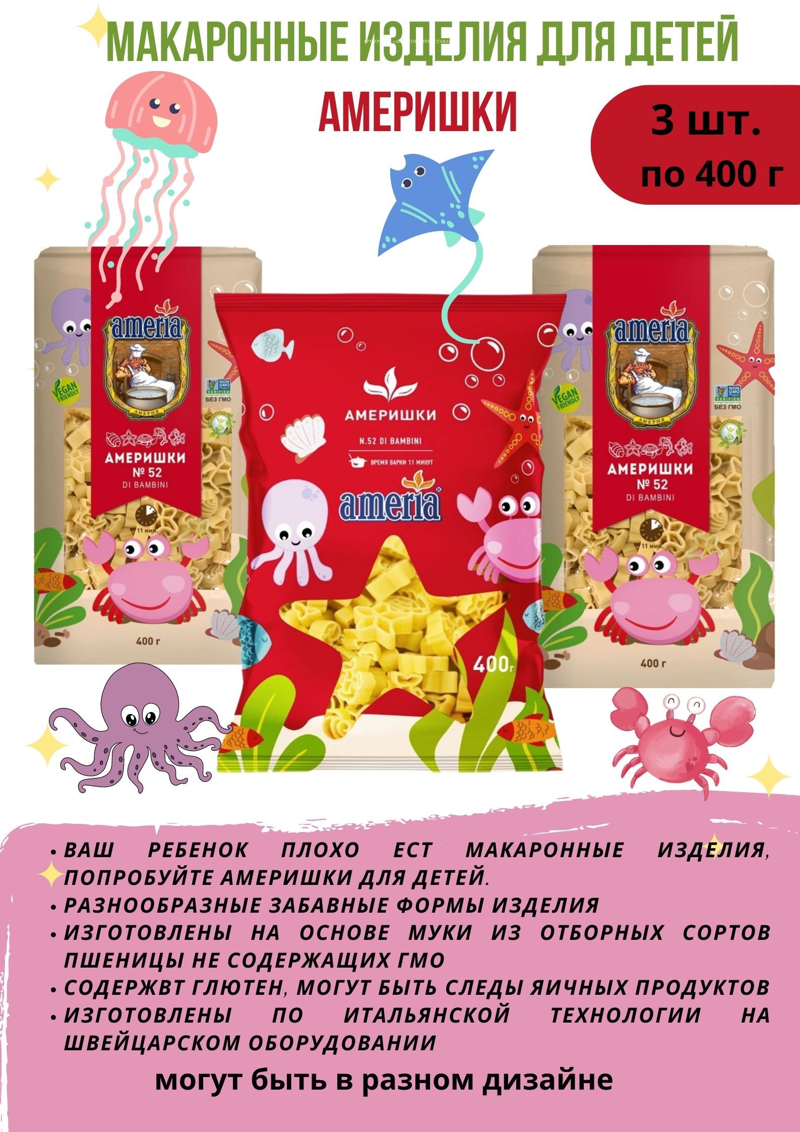 Макаронные изделия Ameria Детские (Америшки) № 052, 400г 3 уп