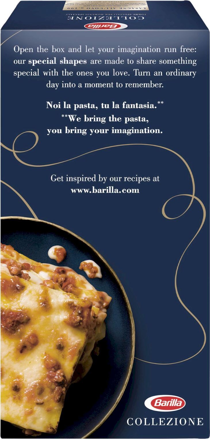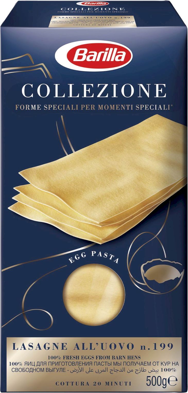 Описание: Лазанья Barilla Lasagne All’Uovo – основа для вкусного и сытного блюда, которое можно приготовить с самыми разными начинками. Попробуйте традиционный мясной фарш, разнообразные овощи, грибы или морепродукты – всё зависит только от вашей кулинарной фантазии. Итальянская паста Lasagne All'Uovo производится из твёрдых сортов пшеницы с добавлением яиц. Яичные макароны отлично удерживают форму при запекании. В процессе приготовления тонкие гладкие листы лазаньи равномерно пропитываются соусом, делаются мягкими и легко нарезаются на порции. Паста не требует предварительной варки: соберите ингредиенты в форме для запекания и отправьте в духовку всего на 20 минут – ароматное и сочное блюдо готово