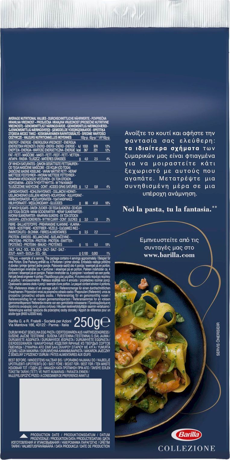 Описание: Яичные макароны Вarilla «Паппарделле» позволят ощутить всю гамму вкусов настоящей итальянской кухни не выходя из дома. Это разновидность традиционной итальянской пасты в виде широких плоских лент, изготовленных на основе муки из пшеницы твёрдых сортов с добавлением яиц. Благодаря высококачественным ингредиентам лапша не слипается и не разваривается при приготовлении, оставаясь аппетитной в тарелке. Макароны-гнёзда Вarilla Pappardelle прекрасно сочетаются с различными соусами, мясом, рыбой, птицей, морепродуктами. С этой пастой открывается широкий простор для кулинарного творчества, ограниченный лишь вашей фантазией