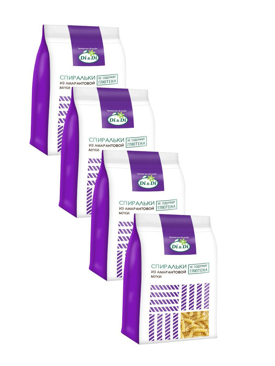 Описание: Макаронные изделия без глютена амарантовые Di&Di, Спиральки, 4 упаковки по 250г.