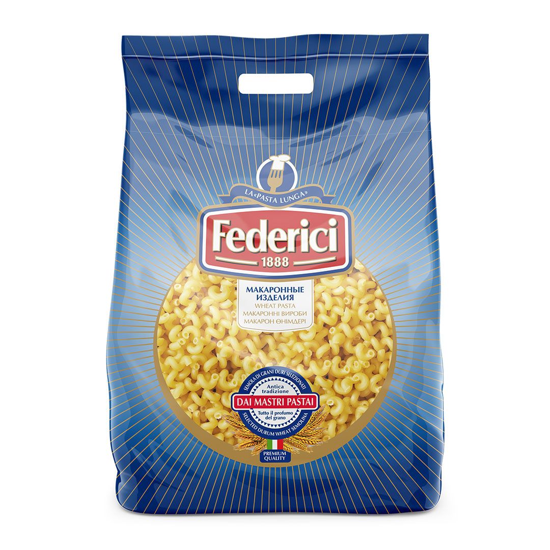 Описание: Federici начинают свою историю c 1888 года в Италии. С 1990-х г. производство перевезено в Россию на макаронную фабрику «Америя», оснащенную современным швейцарским (фирма «Buhler») и итальянским (фирма «Fava») оборудованием, что позволяет соблюдать все технологии производства и получать качество, не уступающее итальянскому.