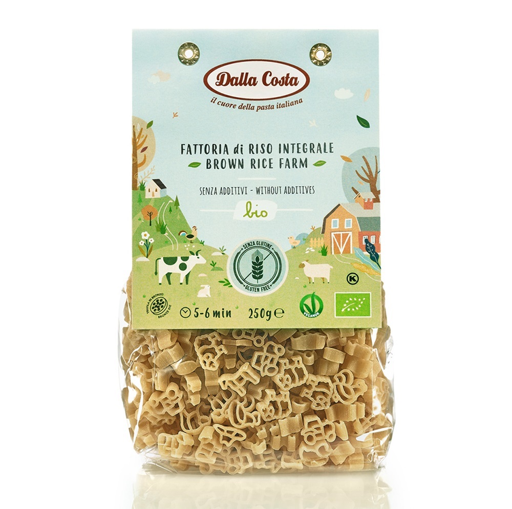 Описание: Оригинальная детская паста Dalla Costa в форме различных зверушек, живущих на ферме у бабушки, создана из высококачественной муки коричневого риса. Коричневый рис — это безглютеновый продукт, отличается деликатным и изысканным вкусом.