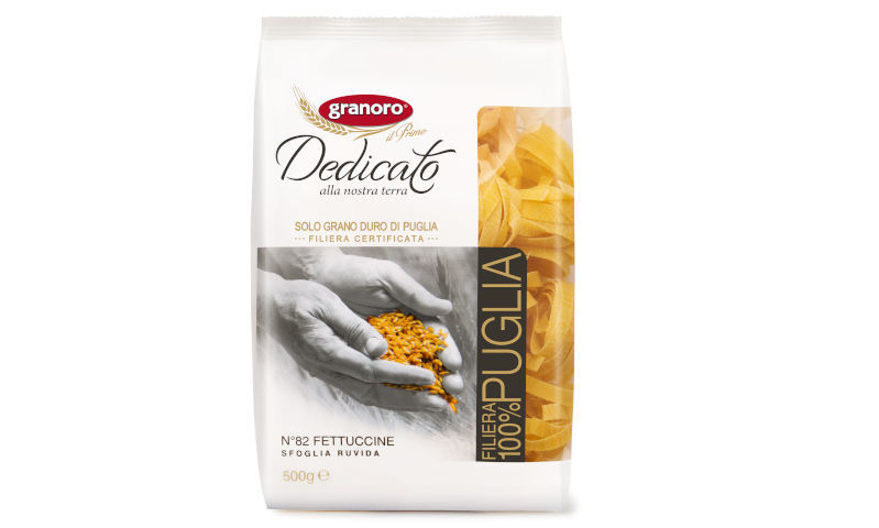 Описание: Текст при отключенной в браузере загрузке изображенийМакаронные изделия бренда «GRANORO»Текстовое описание изображенияЛинейка «Dedicato»Линейка пасты Granoro Дедикато произведена из лучших сортов твёрдой пшеницы, выращенной исключительно в регионе Апулии, который славится богатой историей и традициями. Эта линейка пасты сочетает в себе новейшие технологии и вековые традиции и создана для тех, кто хочет ежедневно наслаждаться натуральными, экологически чистыми продуктами..Текстовое описание изображенияТекст при отключенной в браузере загрузке изображений100% из АпулииGranoro Dedicato (Граноро Дедикато) — это амбициозный проект производителя Granoro, стартовавший в 2012 году и объединяющий на данный момент более 340 небольших сельскохозяйственных предприятий Апулии. Он направлен на поддержку и рост производства пасты из пшеницы твердых сортов высочайшего качества, выращенной на территории Апулии. Общая цель производителей — повысить ценность региональной пшеницы, организовав эффективную цепочку поставок — с полей прямо на стол.Текст при отключенной в браузере загрузке изображенийАмбициозный проект АпулииGranoro Dedicato — первая сертифицированная паста данного проекта. Партнеры, участвующие в этом проекте, гарантируют высочайшее качество и происхождение сырья из Апулии сертификацией, а также отслеживанием 100% объема продукции от полей, где выращивается пшеница, до стола, благодаря соглашению о цепочке поставок между фермерами, производителями муки и макаронной фабрикой Granoro.Текст при отключенной в браузере загрузке изображенийПодтвержденное высочайшее качествоЛинейка Granoro Дедикато имеет сертификацию, которая гарантирует отсутствие пестицидов и глифосатов. Макаронные изделия проходят обработку на матрицах из бронзы, что делает их поверхность чуть шероховатой, позволяя оставаться соусу именно на пасте, а не в тарелке, и делать вкус блюда более насыщенным.Текст при отключенной в браузере загрузке изображенийМакаронные изделия из твердых сортов пшеницы GranOro Dedicato № 82 "Феттуччине" 500 гФетучини - это тонкие плоские полоски теста шириной около 7 мм: они похожи на тальятелле, от которых отличаются только большей шириной.